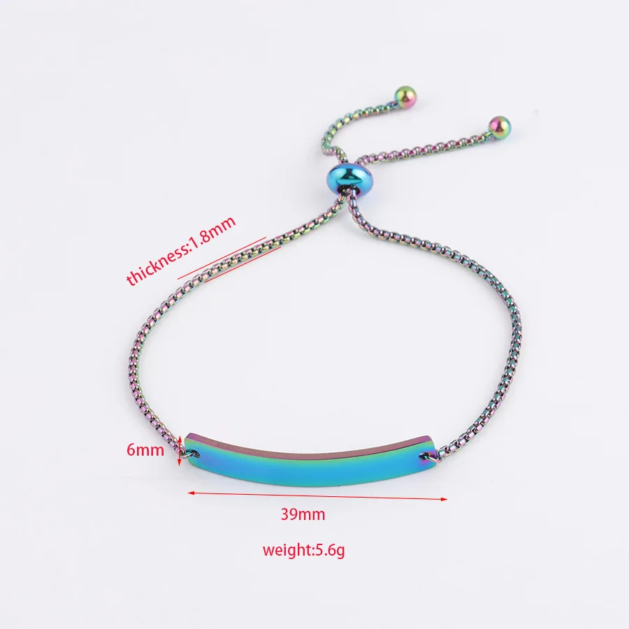 Серебряный/золотой/розовое золото/черный браслет из нержавеющей стали с пустым изгибом для гравировки прямоугольная бирка зеркальная полировка оптовая продажа 10 шт