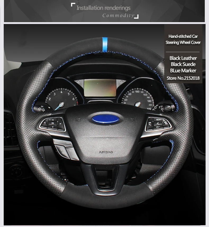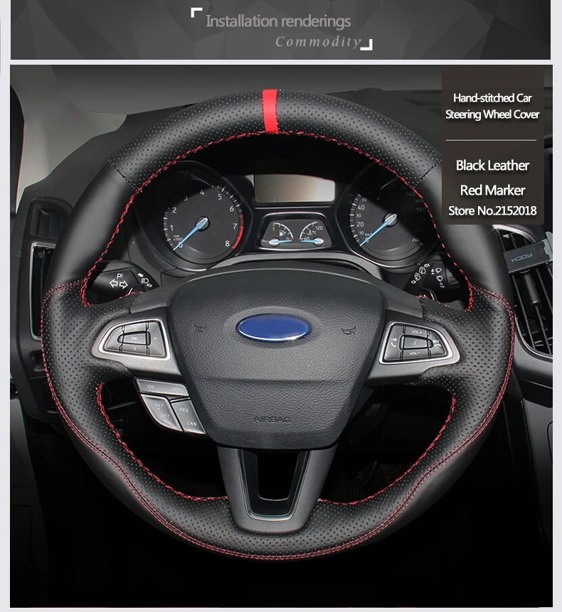 Чехол для руля из натуральной кожи для Ford Focus 3 2015-2018 Kuga 2016-2019 Escape C-MAX Ecosport 2018-2019