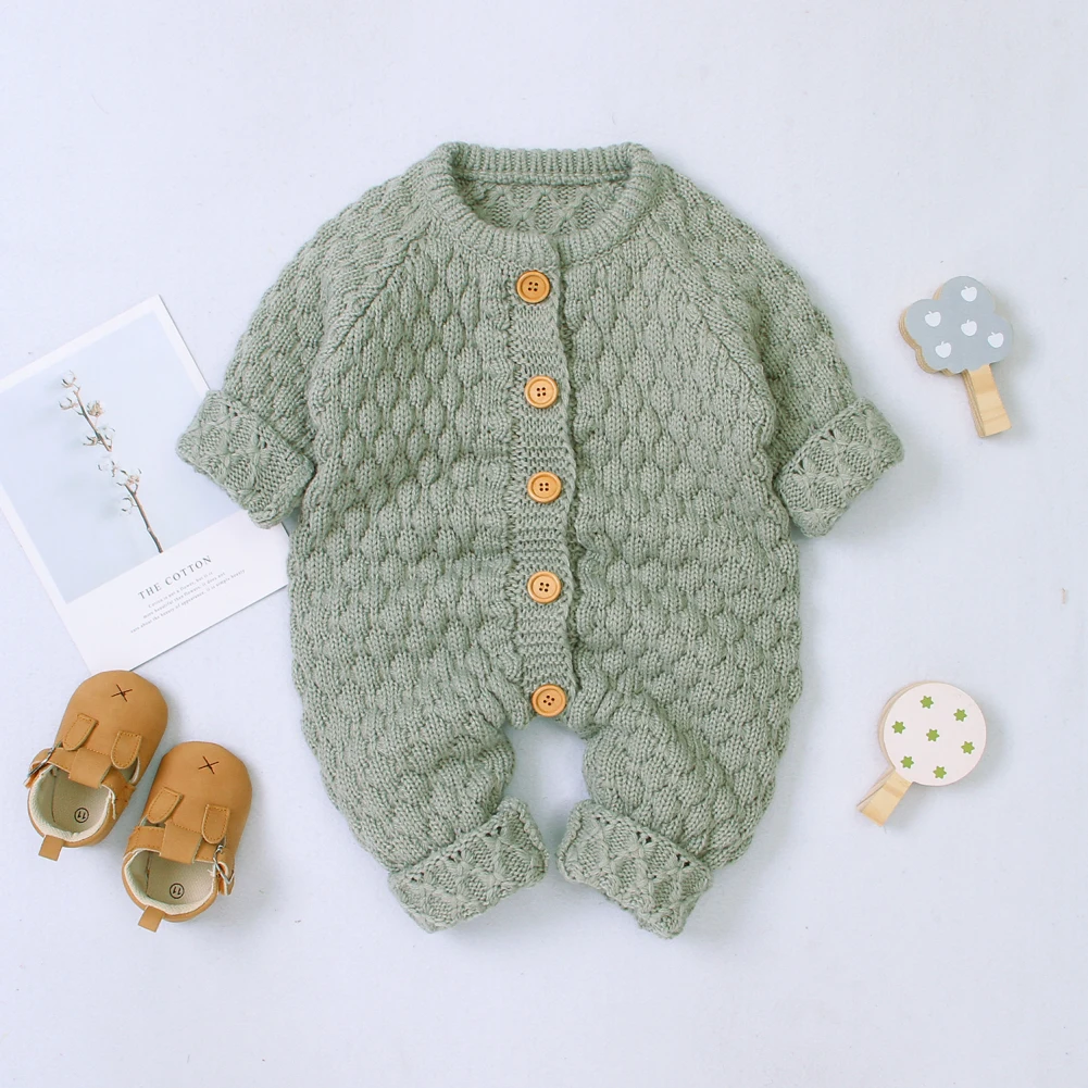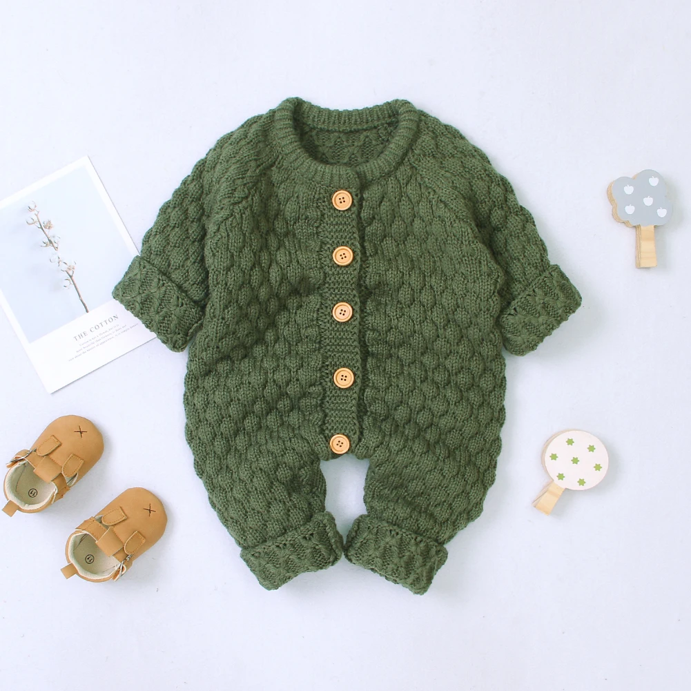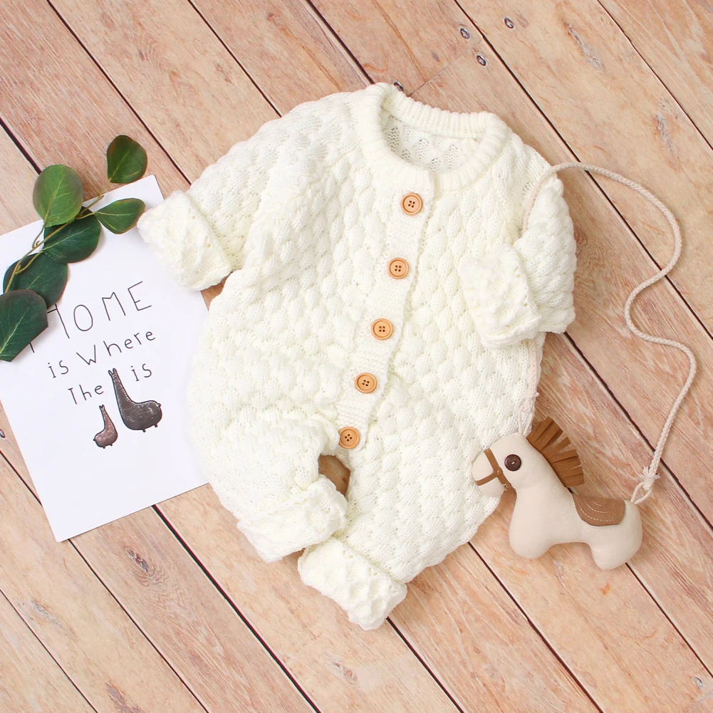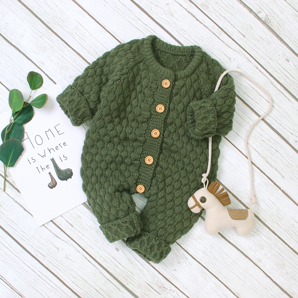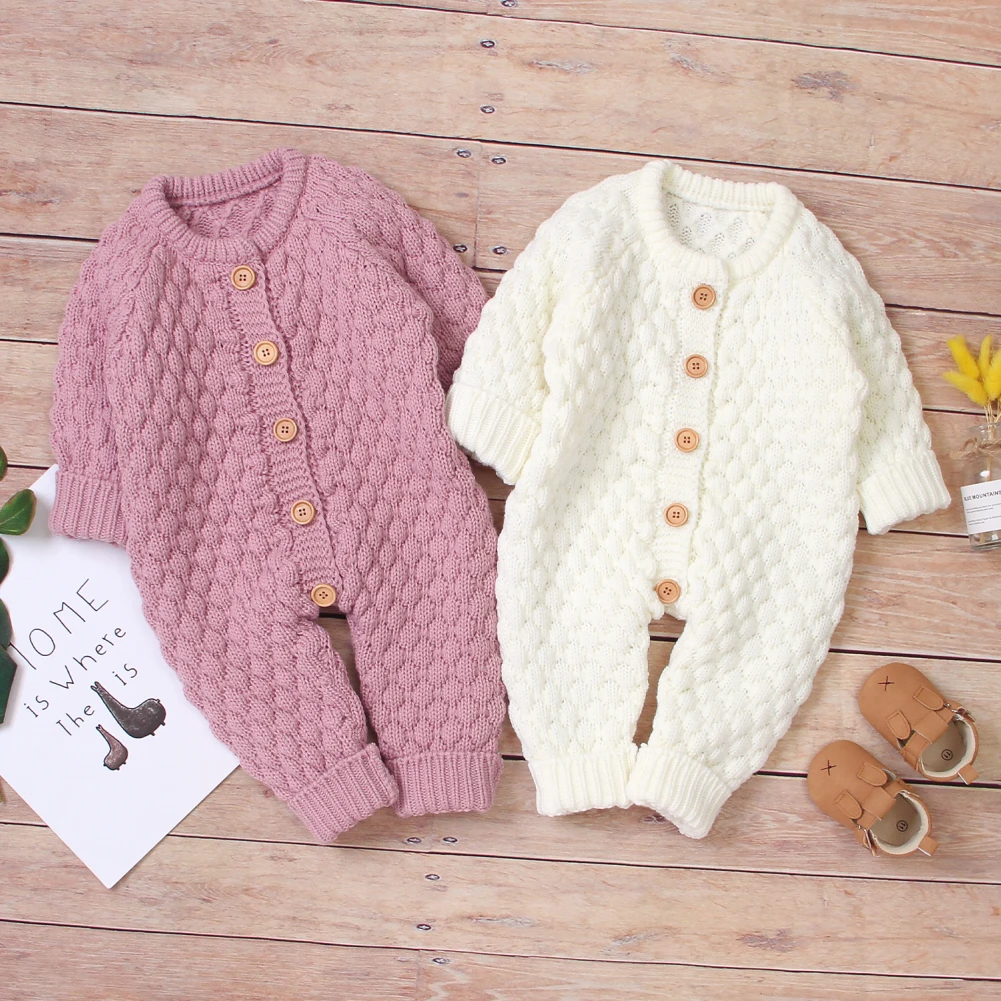 Осенне-зимняя теплая одежда для маленьких девочек и мальчиков, вязаный свитер, комбинезон, одежда
