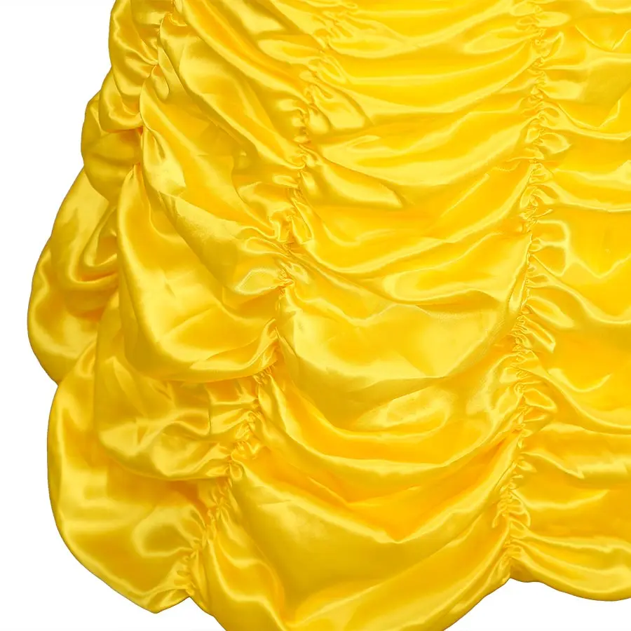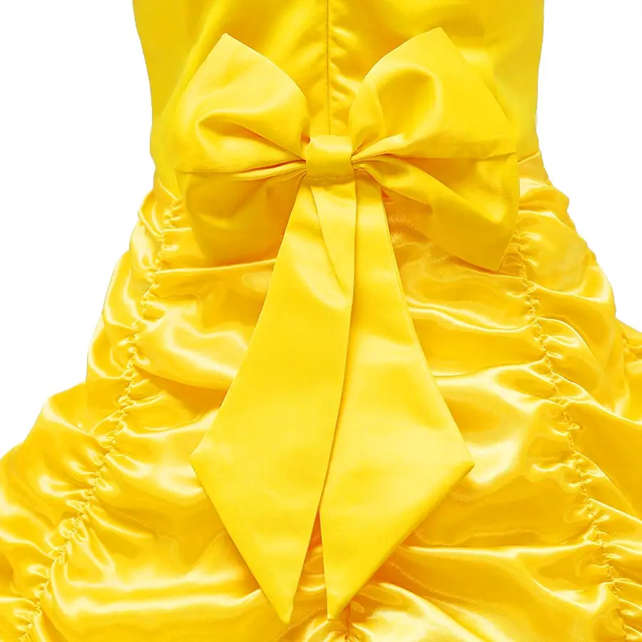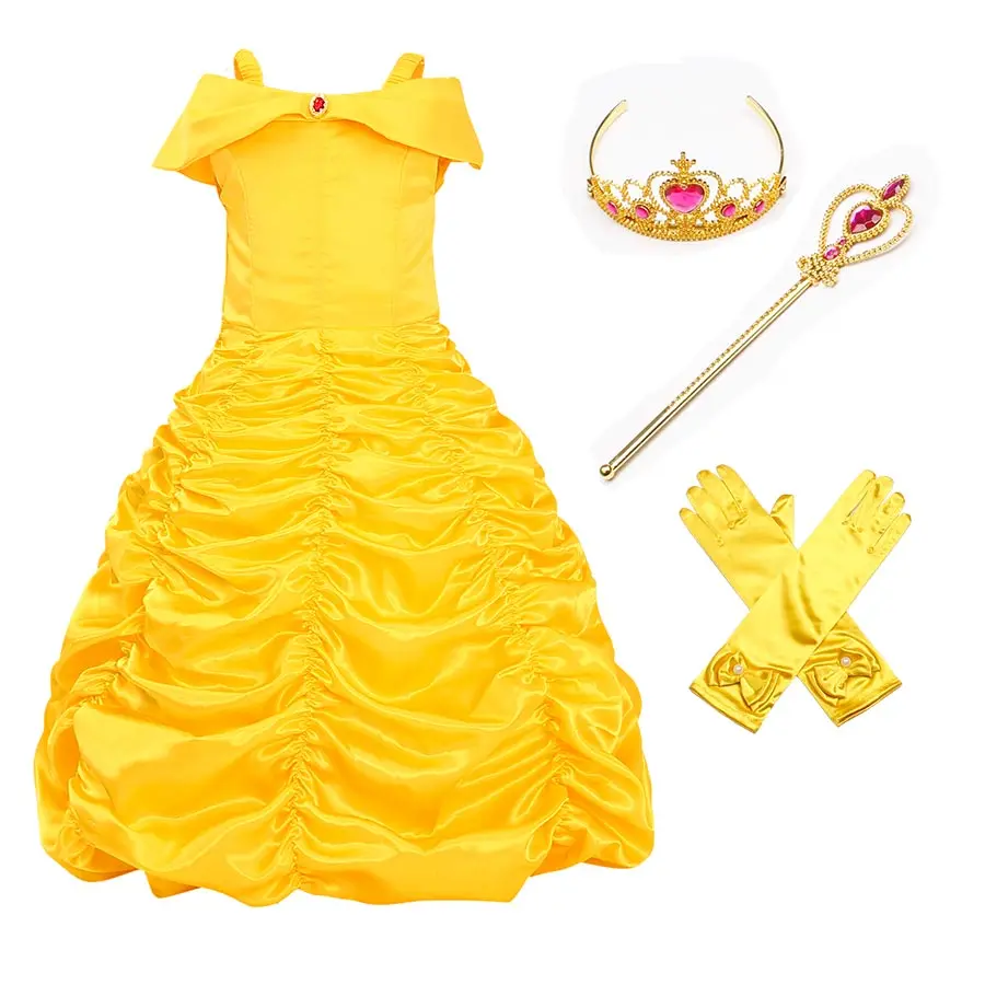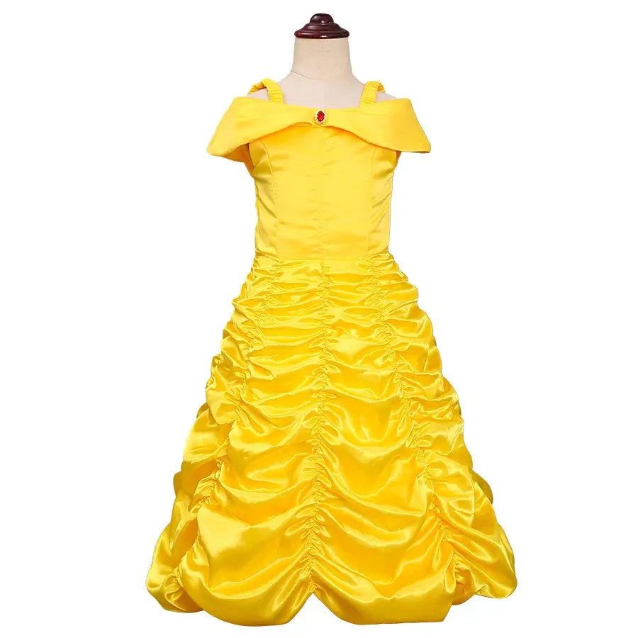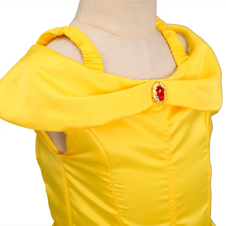 Платье принцессы Белль для девочек, костюм для косплея, детское желтое бальное платье с открытыми плечами, платье на Хэллоуин с короной и волшебной палочкой