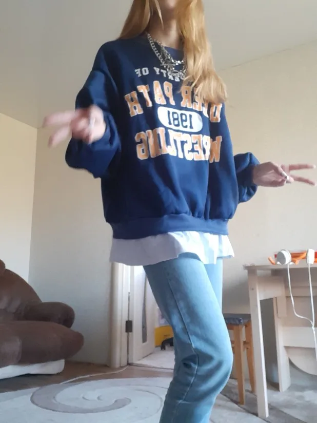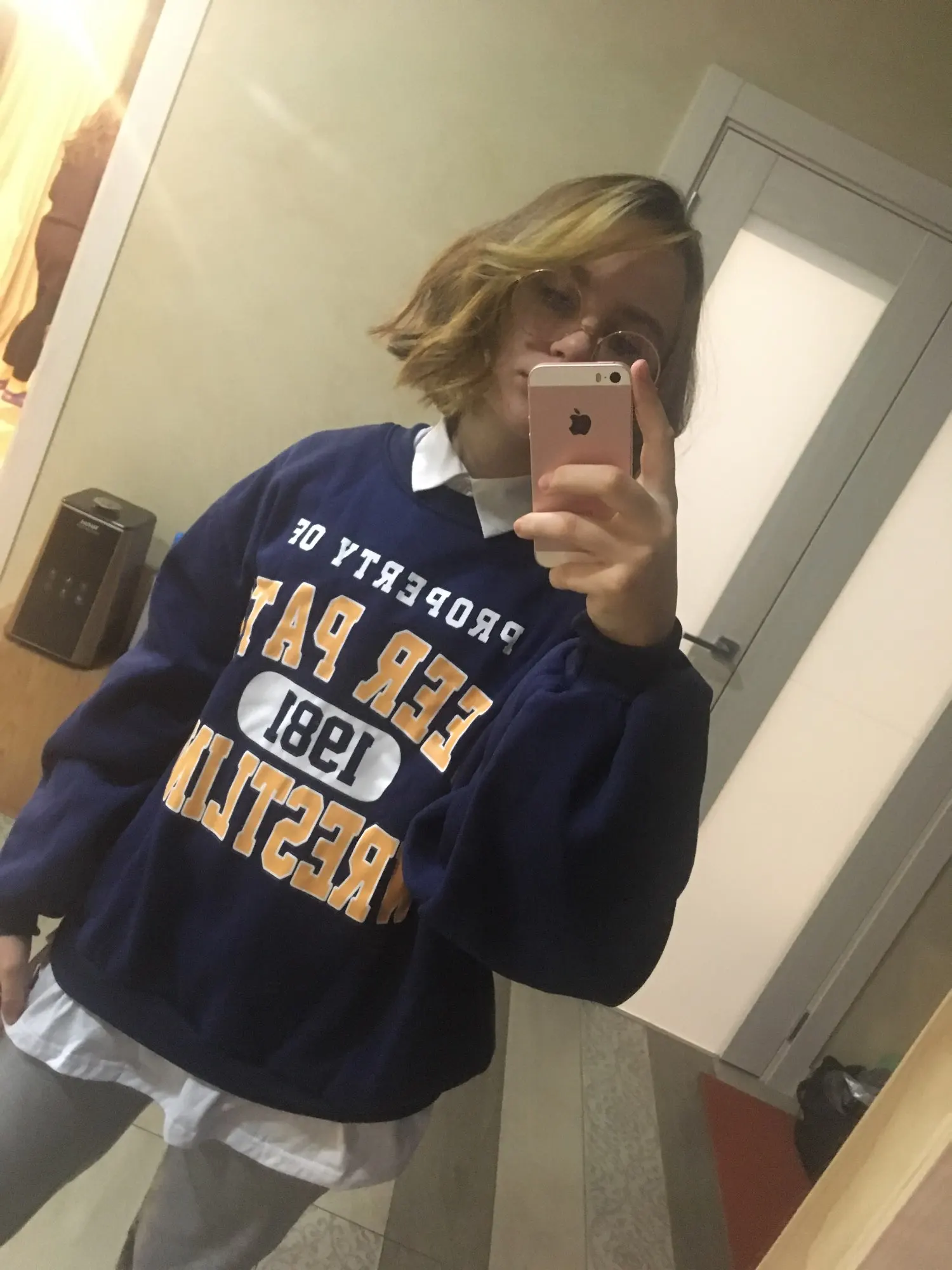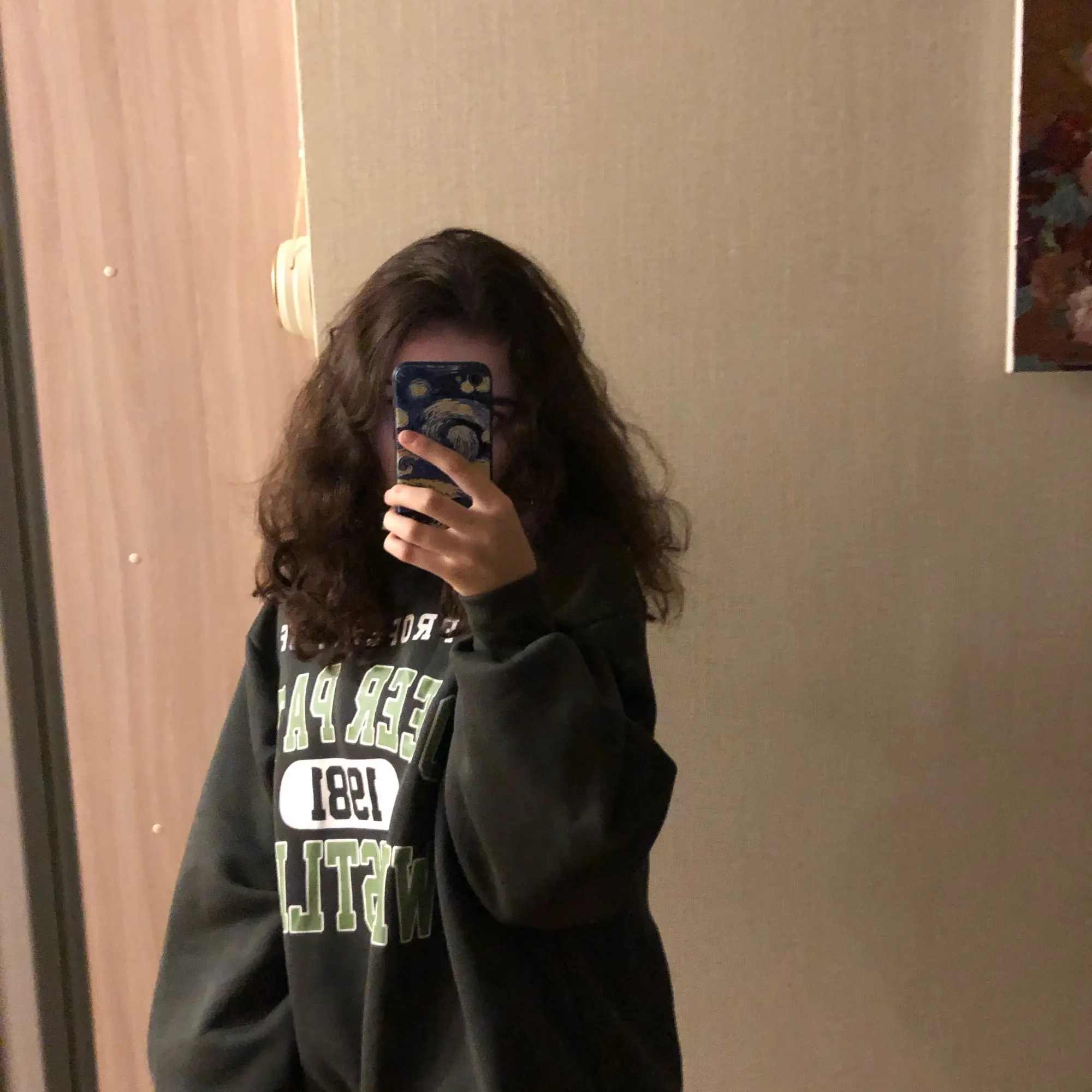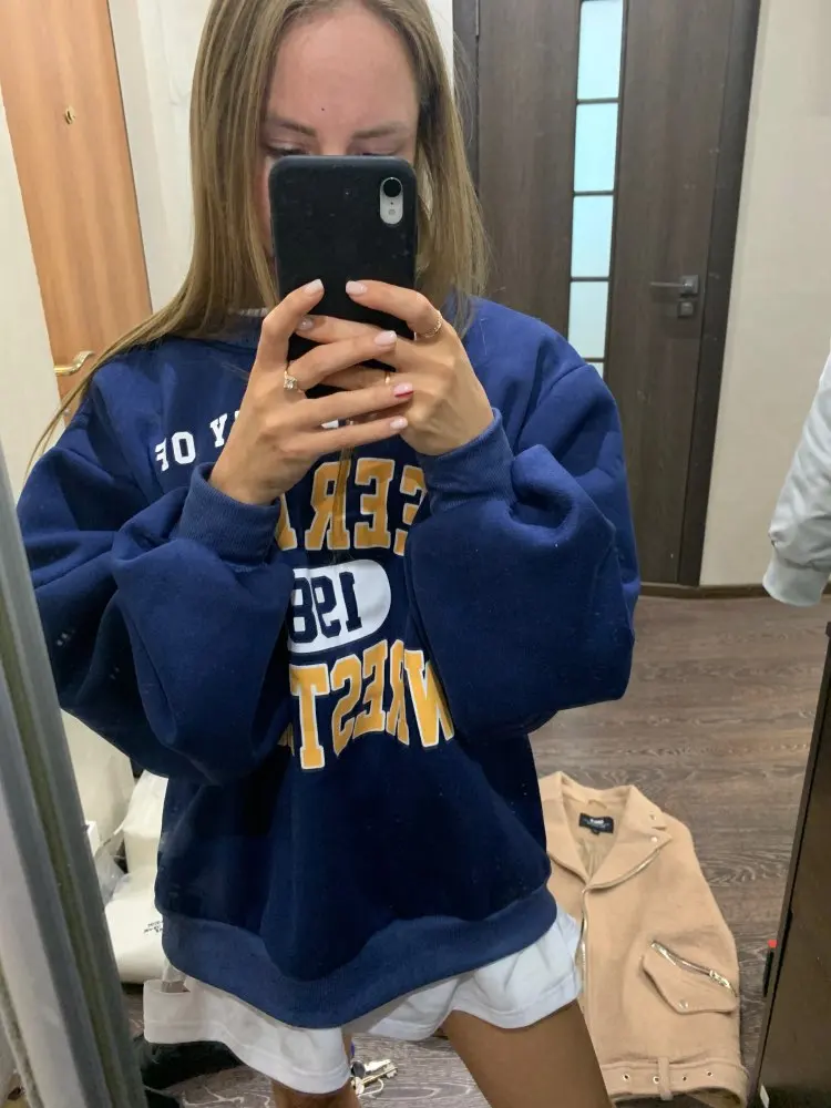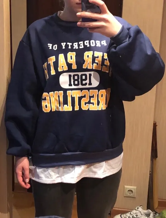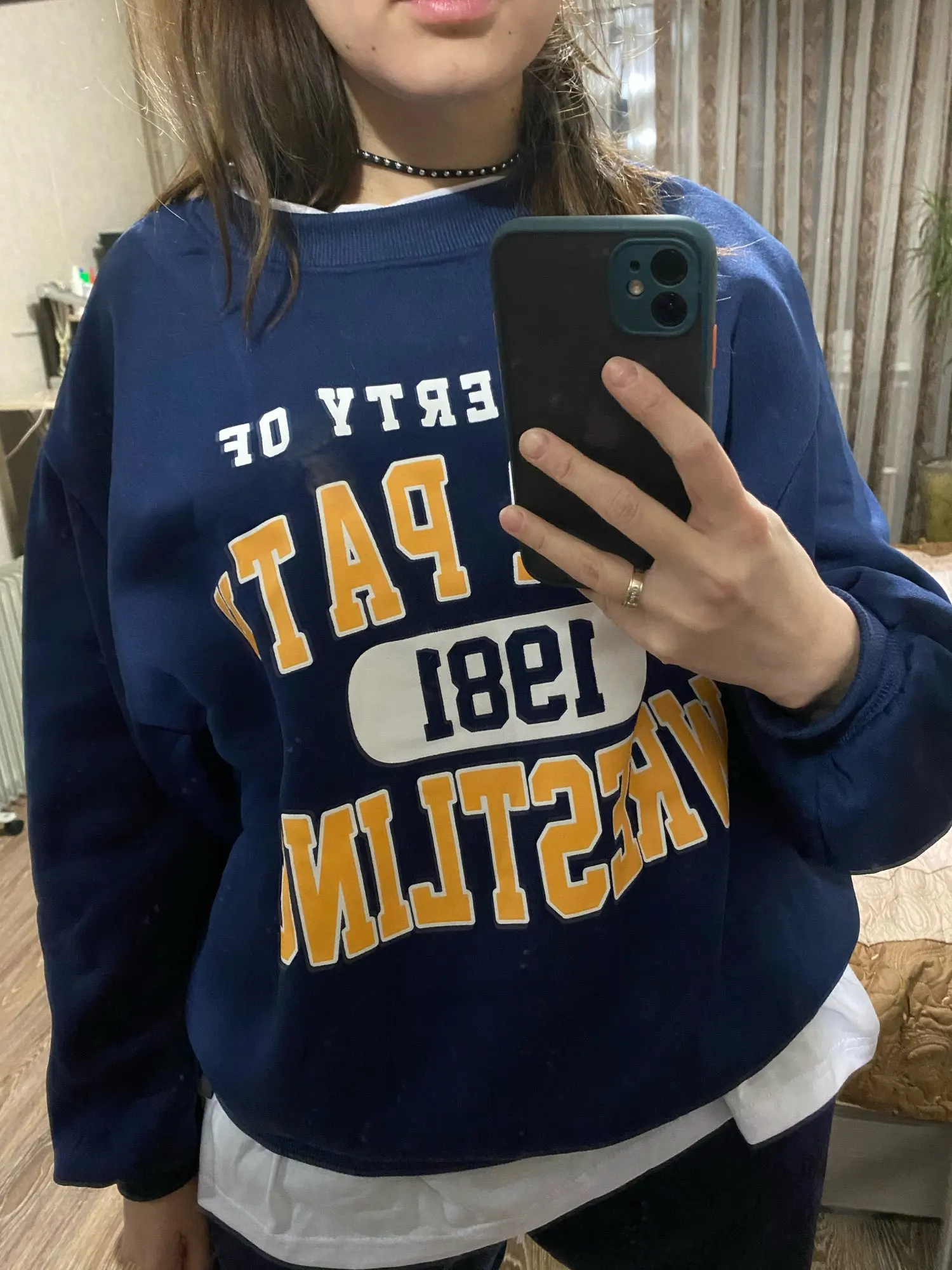 толстовка очень удобная, теплая, естественно в идеальном состоянии, но есть одно но: размер сразу идет в овер сайз(?), то есть я заказывала на 1,5 размера больше моего и толстовка оказалась на меня огромная, короче, если вы S и хотите овер сайз - берите S