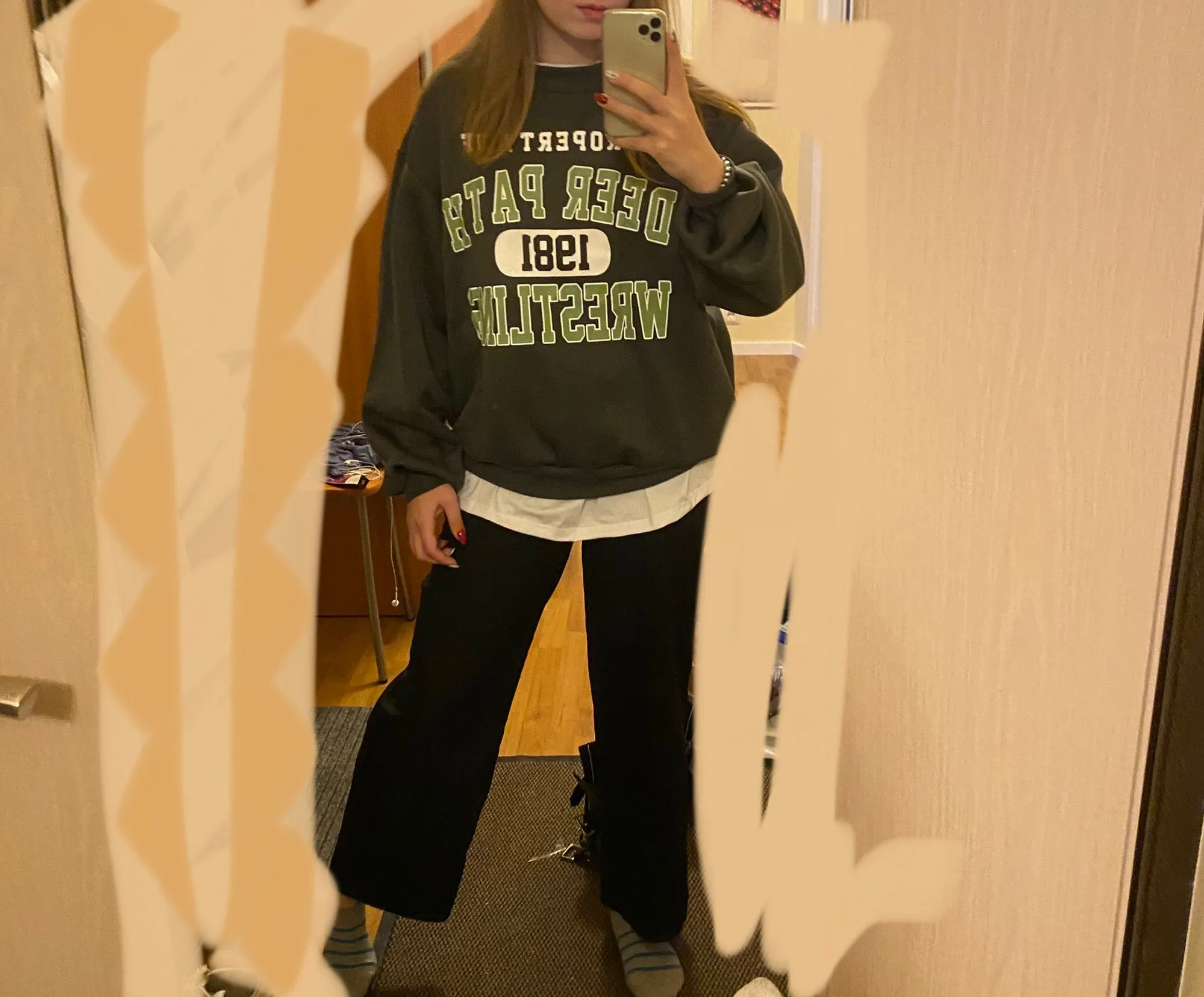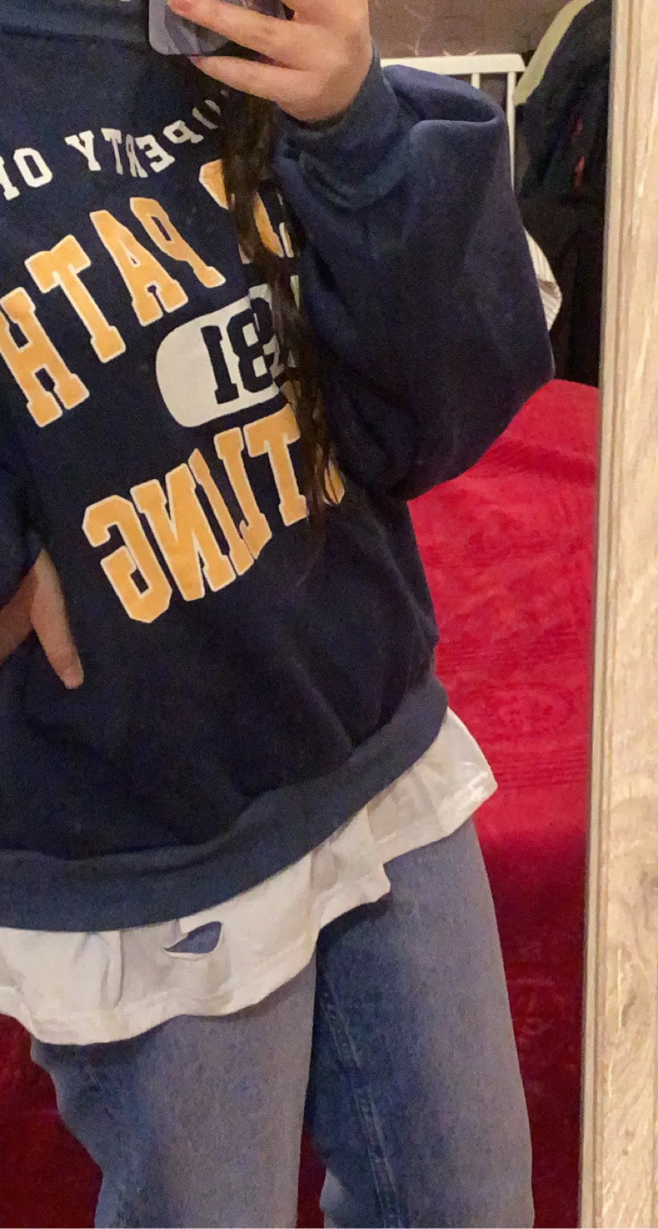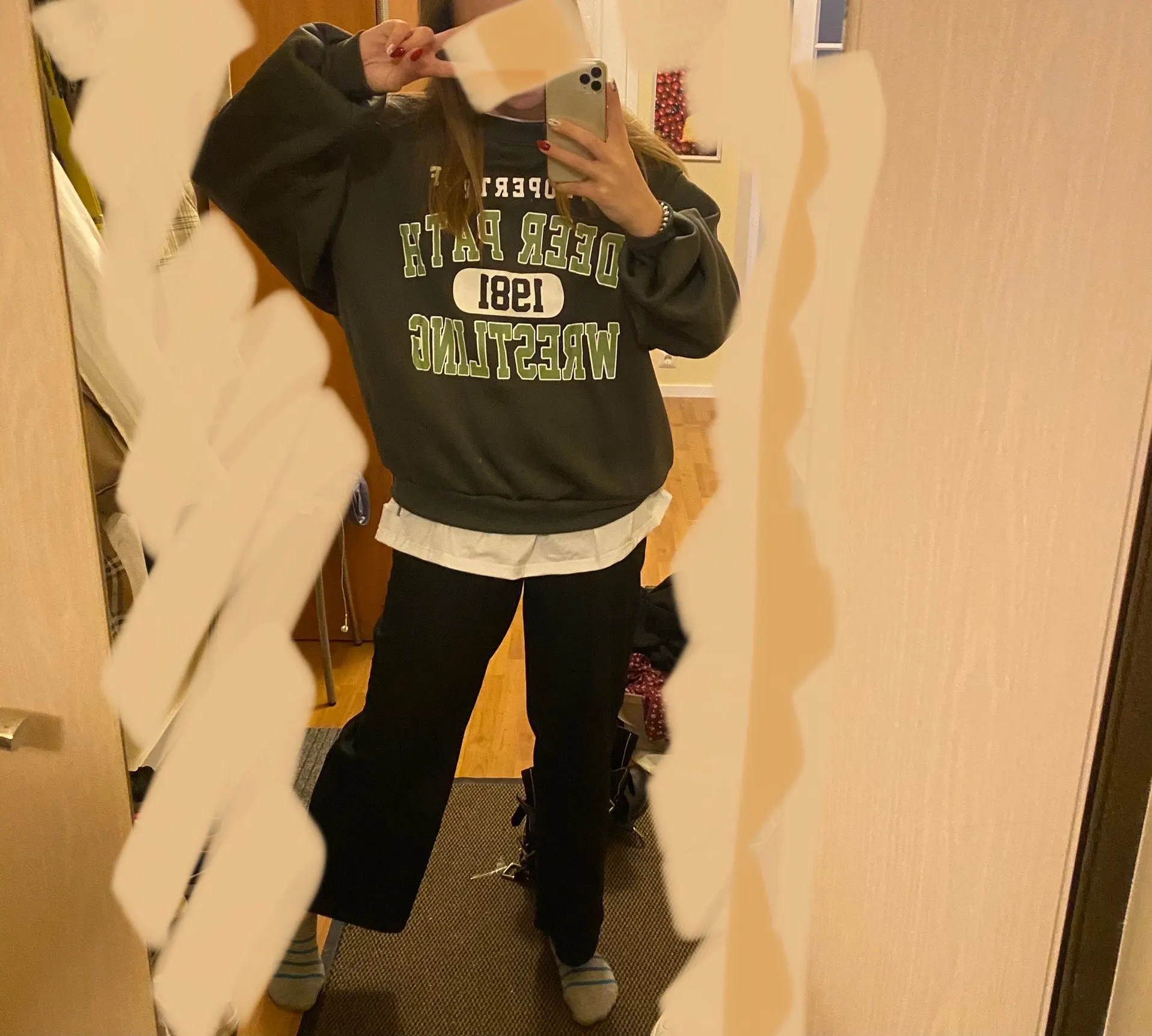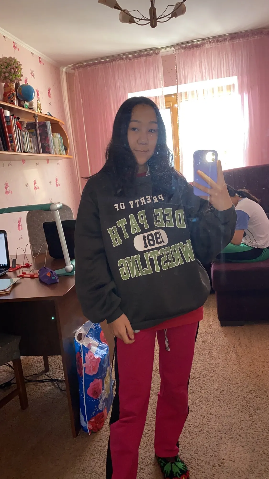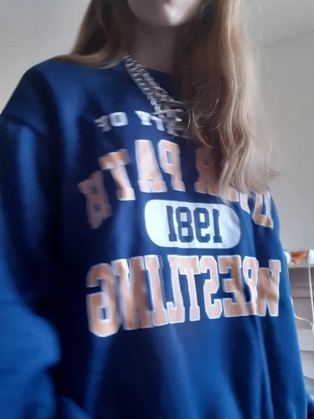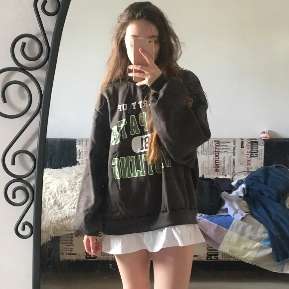 толстовка очень удобная, теплая, естественно в идеальном состоянии, но есть одно но: размер сразу идет в овер сайз(?), то есть я заказывала на 1,5 размера больше моего и толстовка оказалась на меня огромная, короче, если вы S и хотите овер сайз - берите S