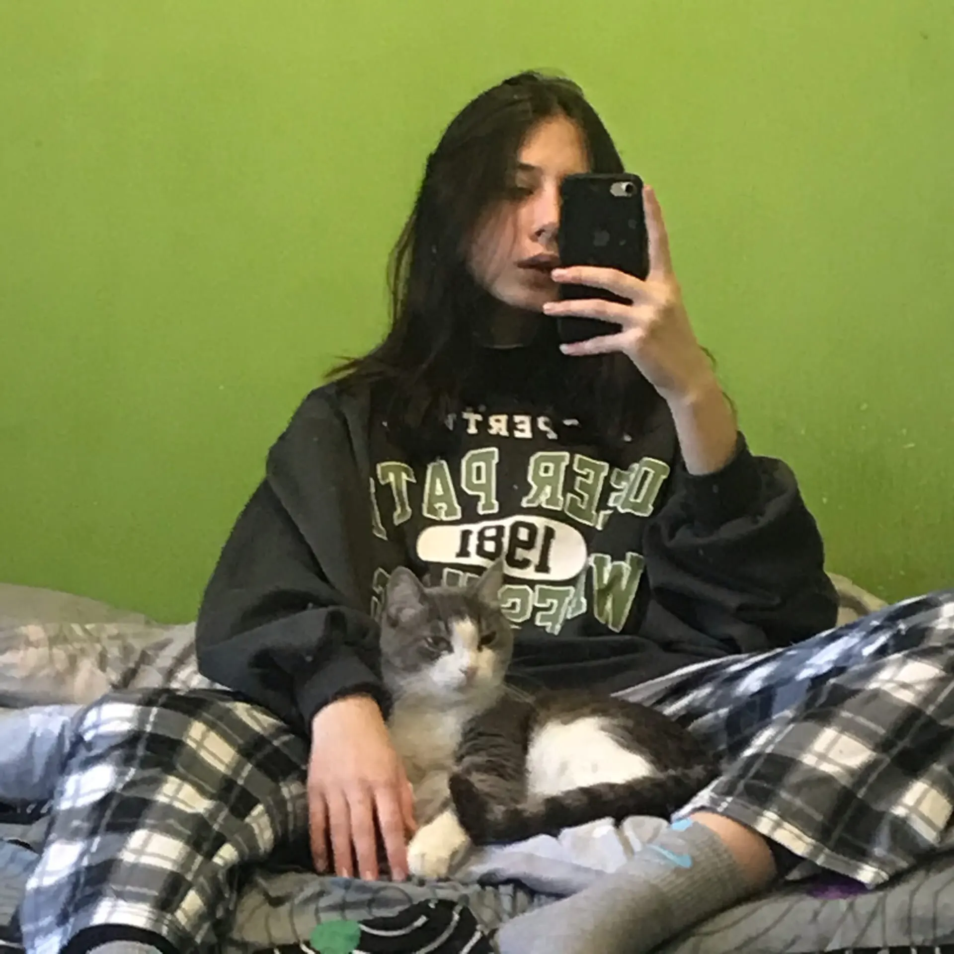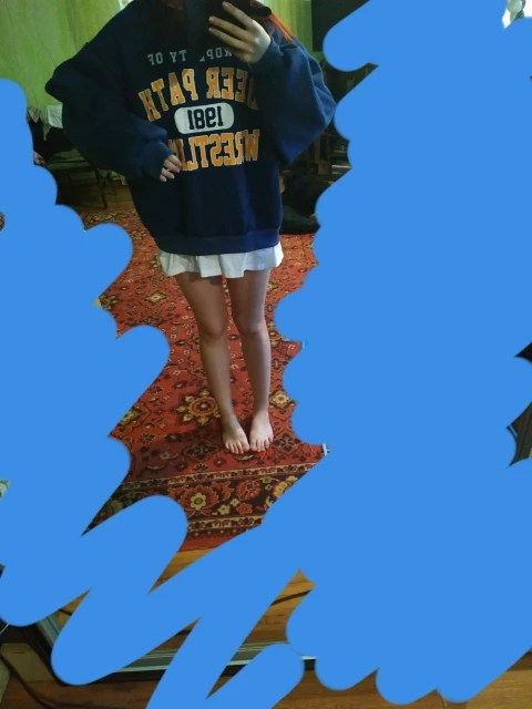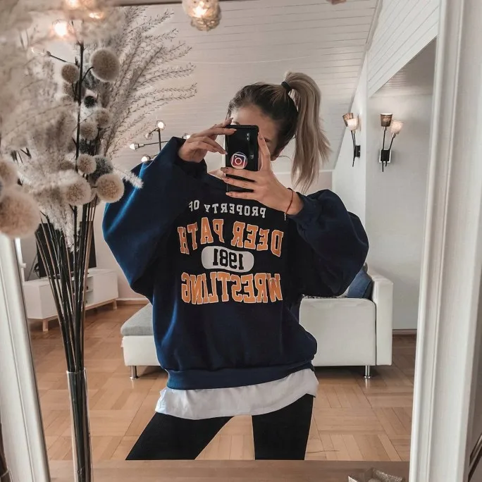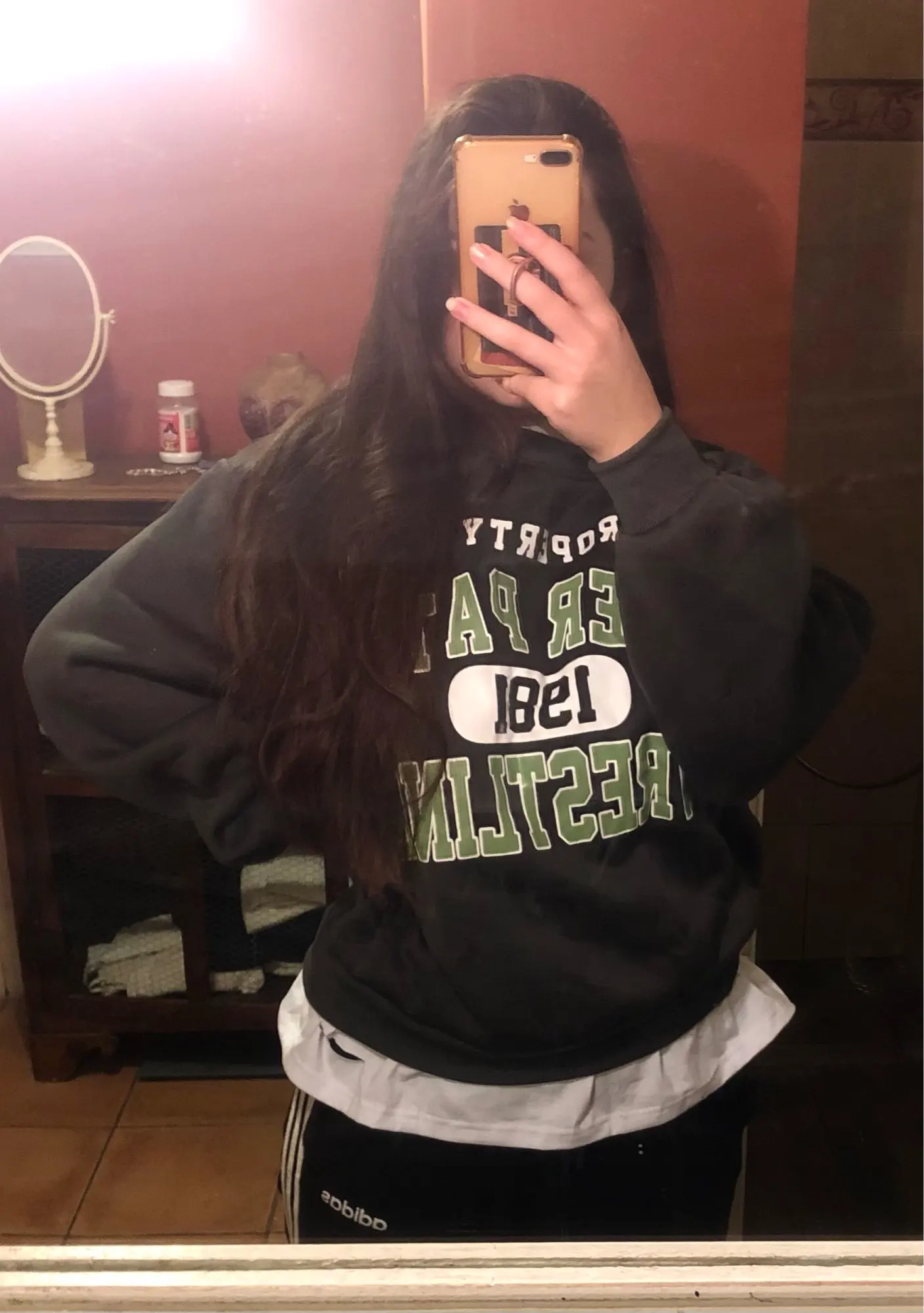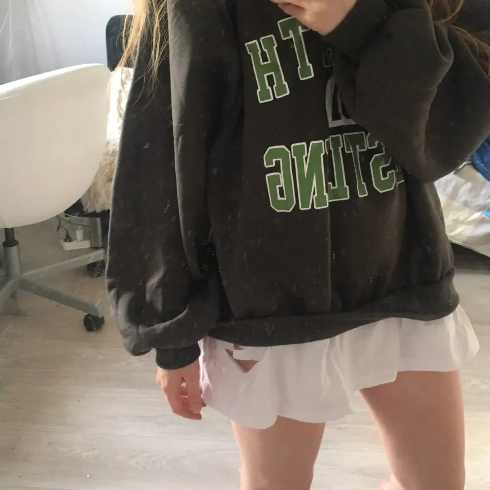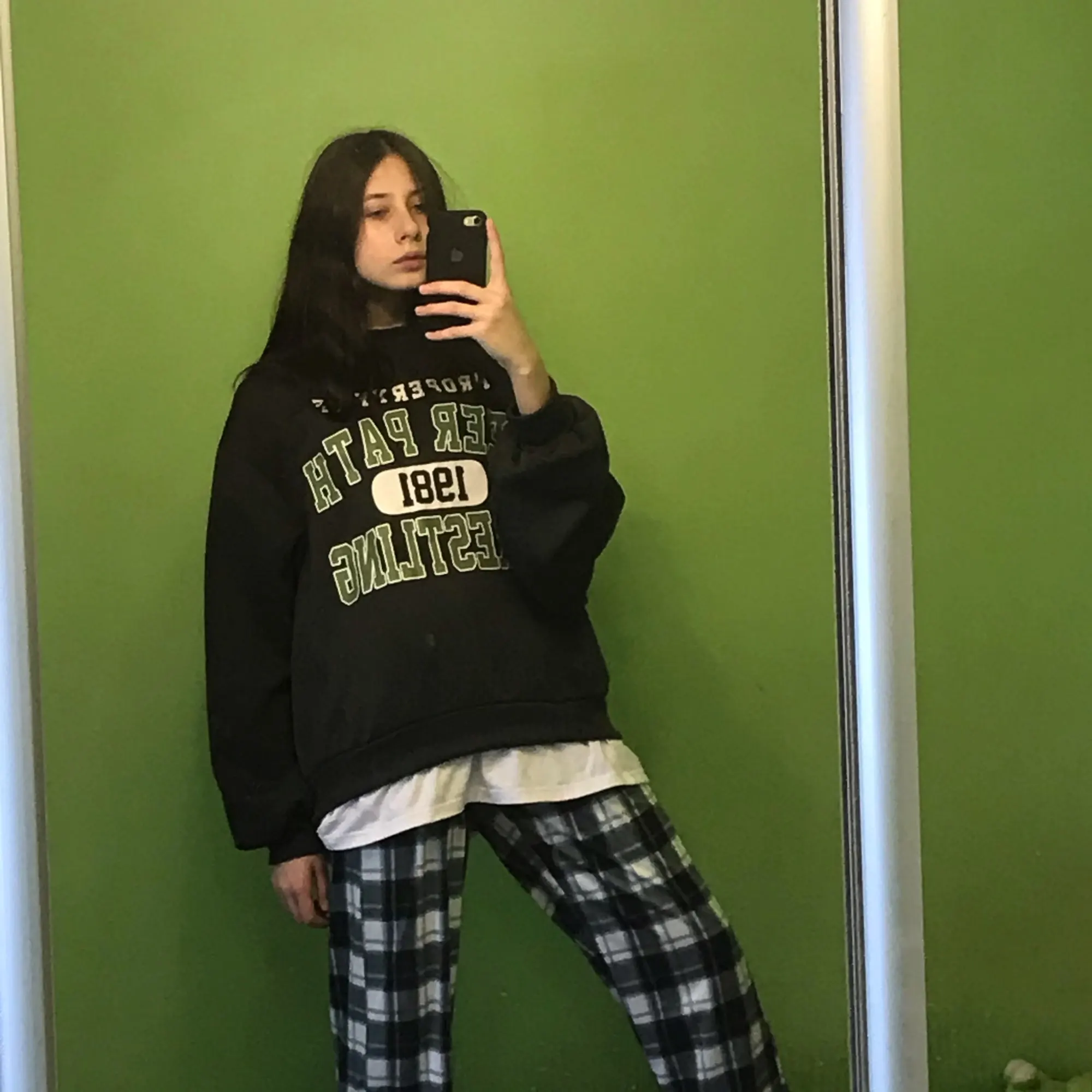 толстовка очень удобная, теплая, естественно в идеальном состоянии, но есть одно но: размер сразу идет в овер сайз(?), то есть я заказывала на 1,5 размера больше моего и толстовка оказалась на меня огромная, короче, если вы S и хотите овер сайз - берите S