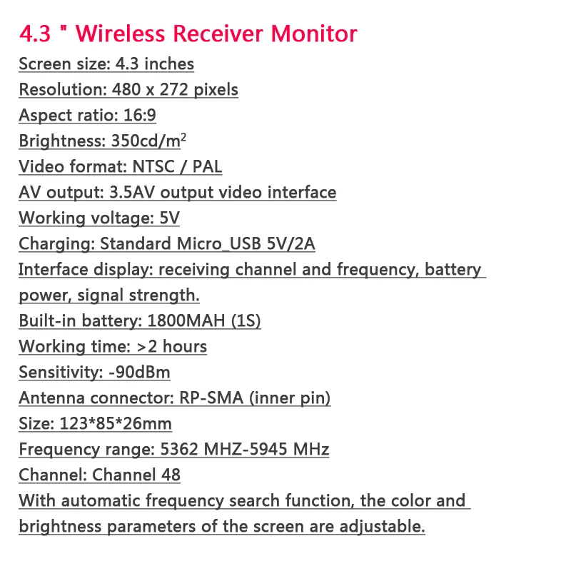 Монитор 5,8 ГГц, 48 каналов, 4,3 дюйма, FPV, 480x272, встроенный аккумулятор, видеоэкран с передатчиком 5,8 ГГц, 600 мВт, TS5823 Pro + CMOS 1000TVL камера
