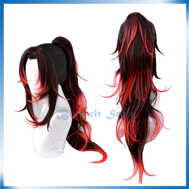 Kimetsu no Yaiba Kokushibou парик демон Slayer Tsugikuni Michikatsu хвост длинный кудрявый черный косплей волос Хэллоуин