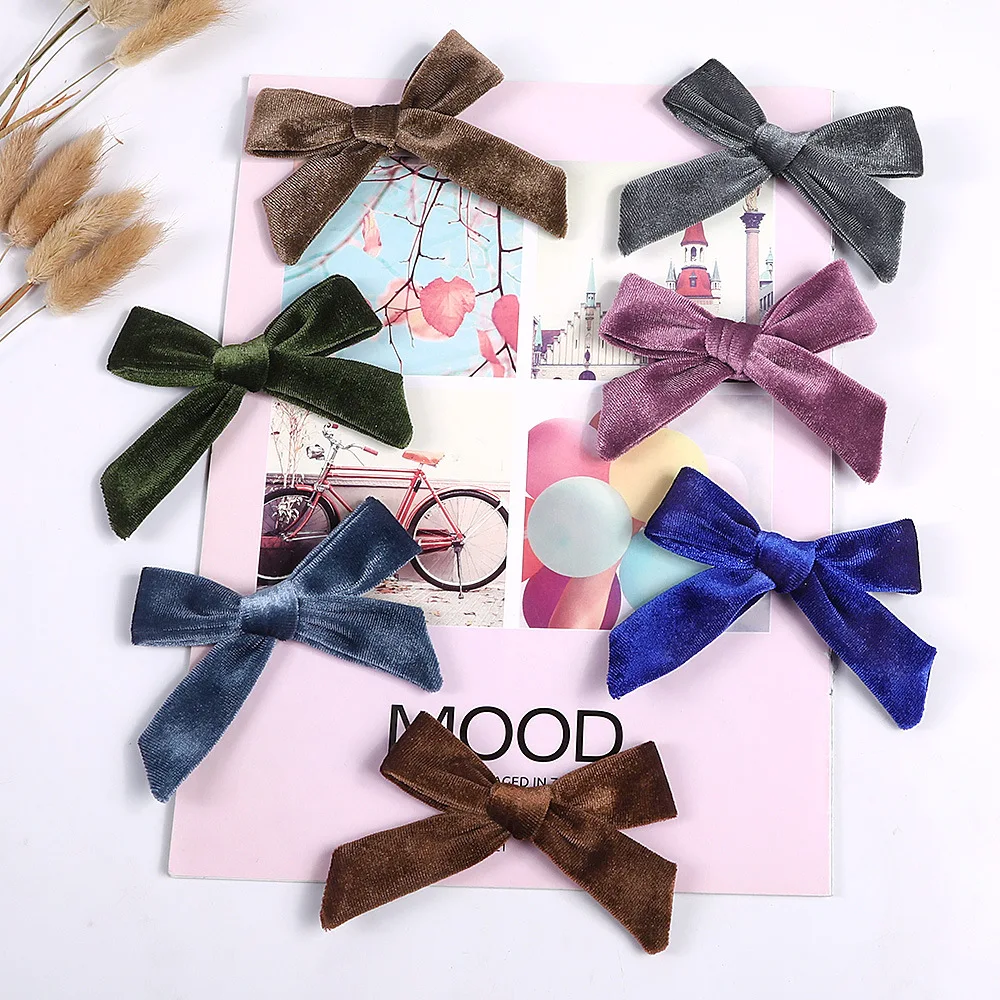 30 шт./лот Новинка 3,6 дюймов и с бантом из плотного бархата с зажимом Buotique Мягкий комбинезон для девочек с бантами заколки вечерние аксессуары для волосБантРазмеры: 9,5 см; При выборе руководствуйтесь длинойЭтот бант с зажимами сзади.
