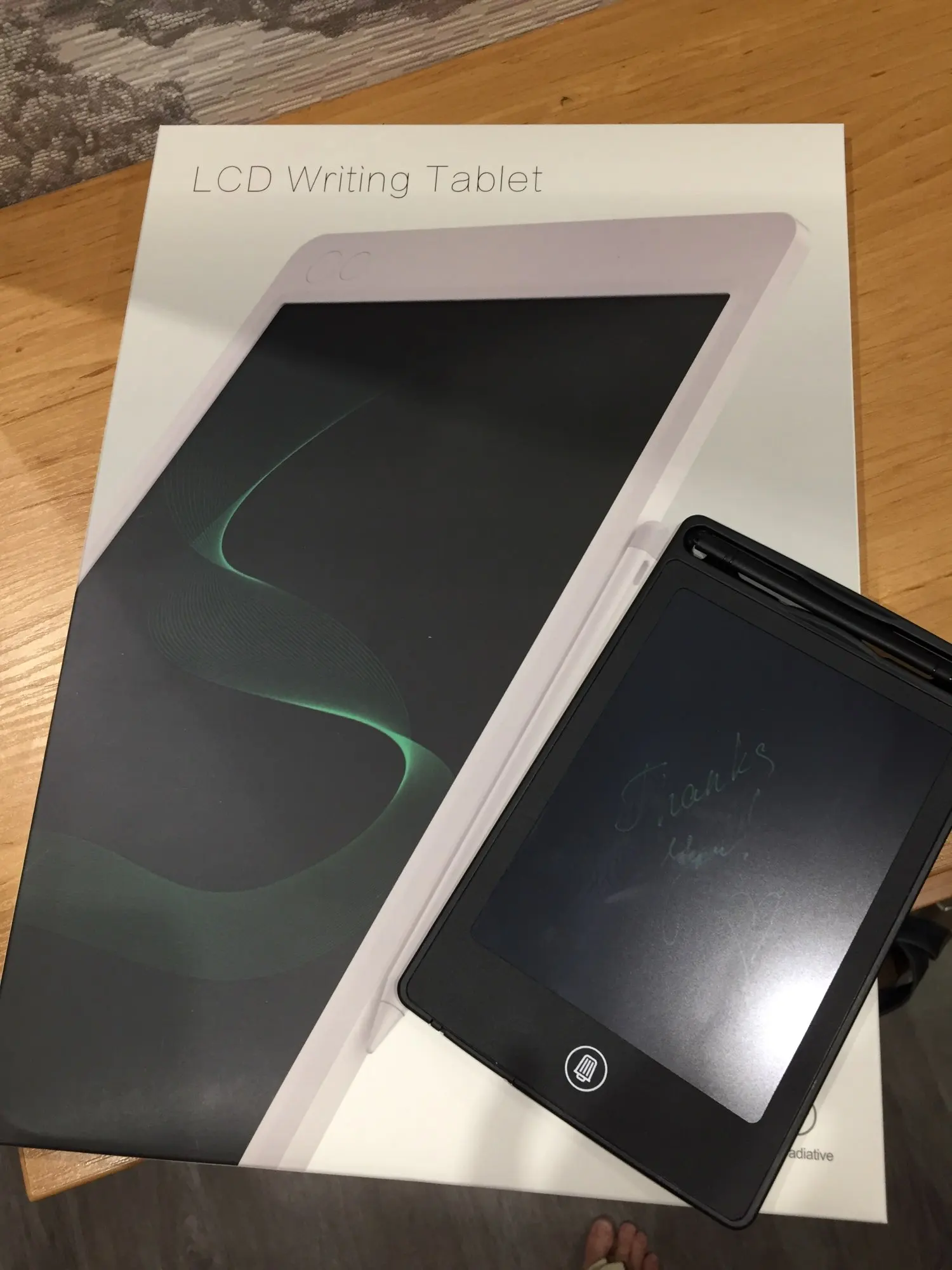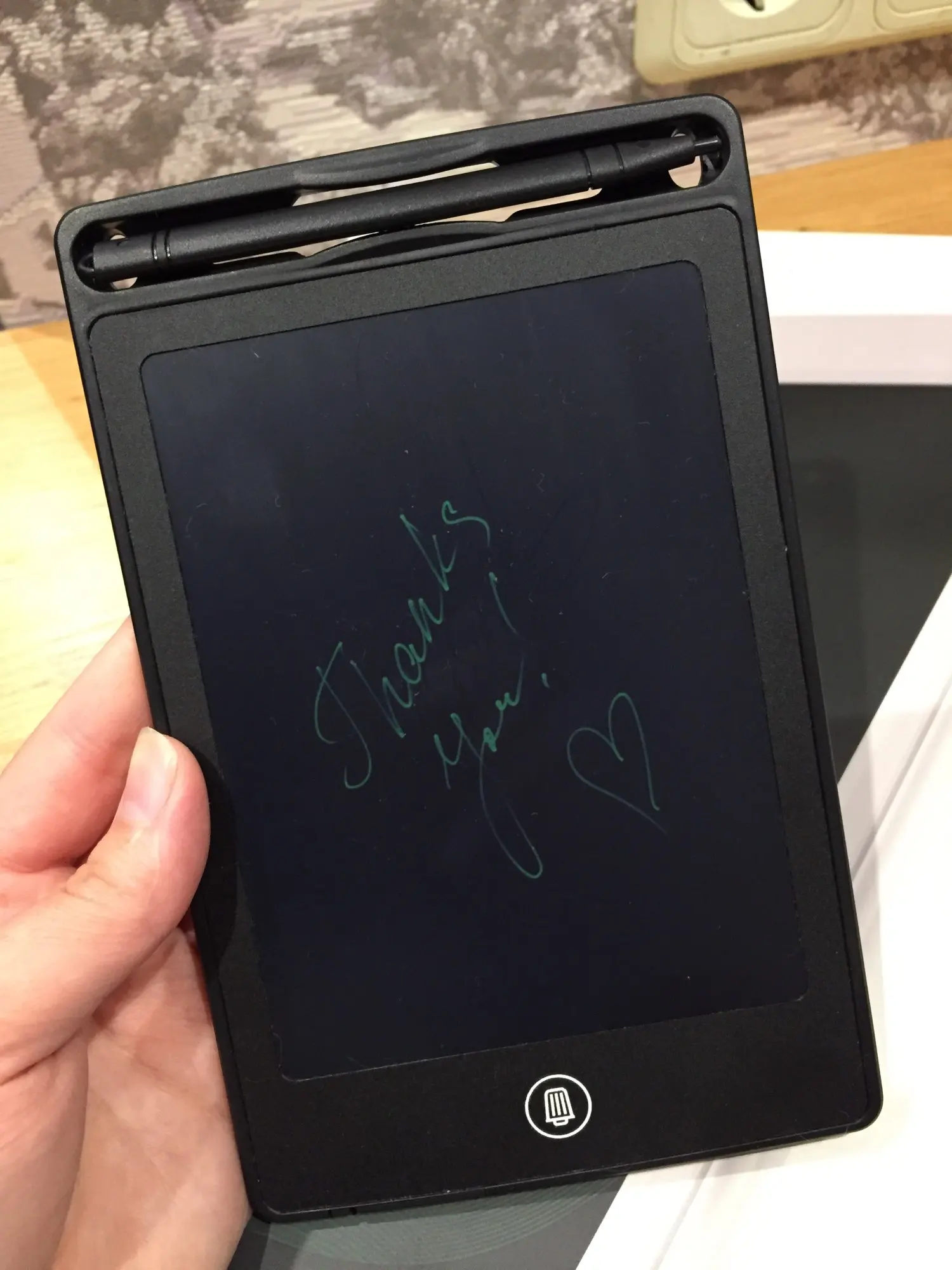 Купила за монеты, доставка около трёх недель Новой почтой, оказался даже больше, чем ожидалось, не могла понять, как он включается, на самом деле, объясняю для таких динозавров, как я, просто берите ручку, прикреплённую вверху, и пишите, а чтобы стирать написанное, нужно сначала разблокировать, т.е. на обратной стороне планшета внизу по центру сдвинуть рычажок влево. Одним словом - рекомендую