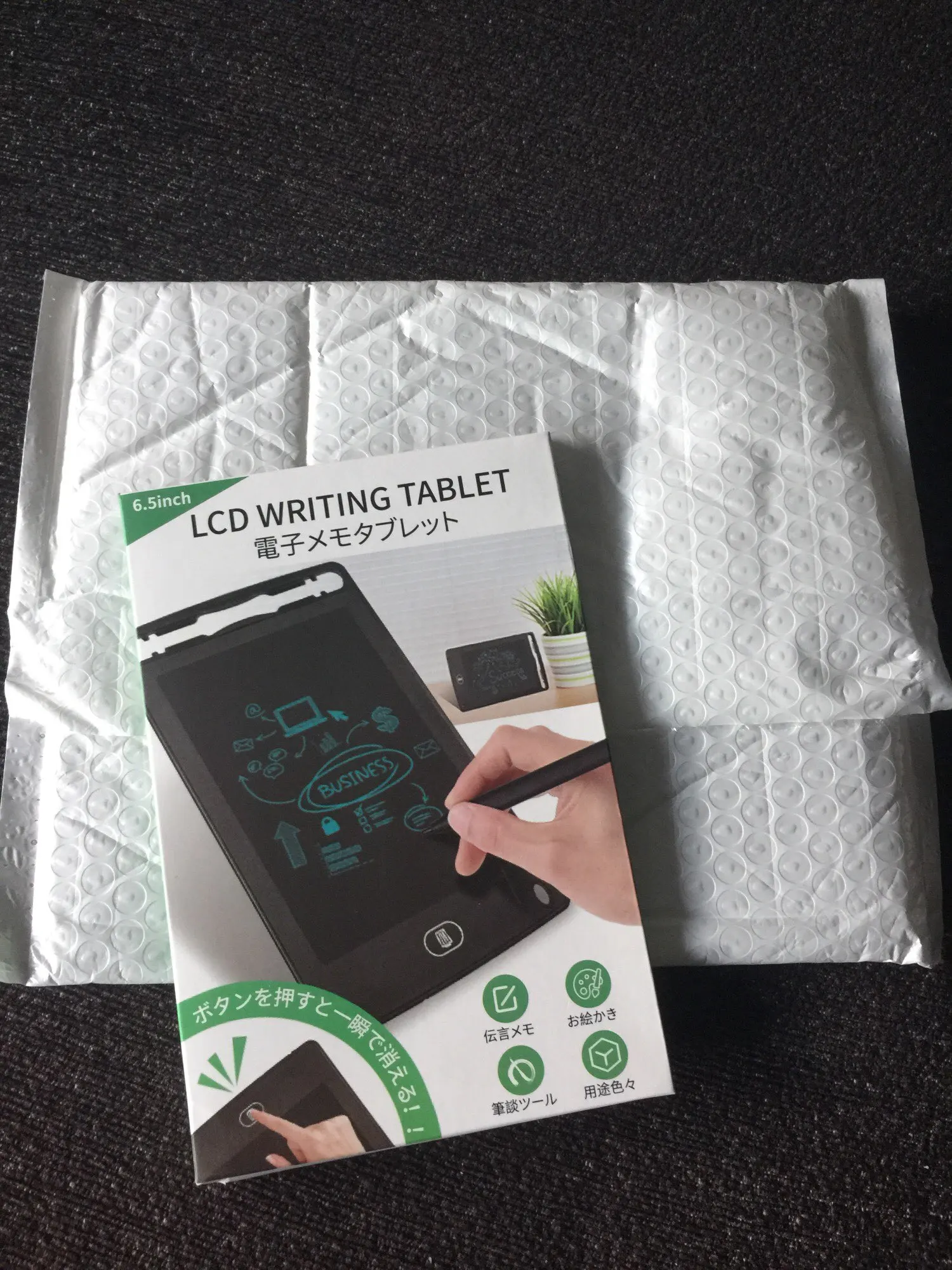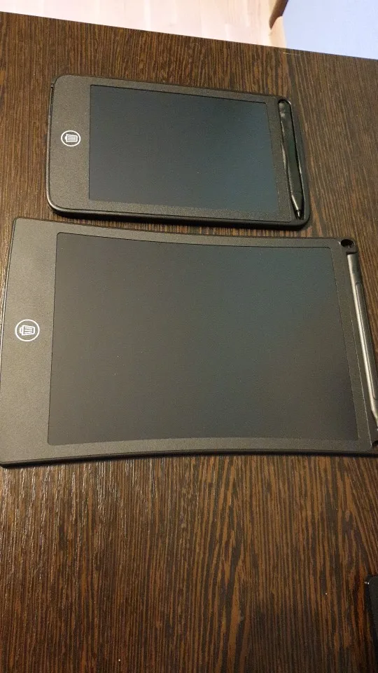 Приехал за 9 дней с Китая в "Пятерочку" - вообщем очень быстро. Брал за 305 рублей с купоном (за монетки постоянно раздают). Удобная полезная вещь, для тех кто делает заметки. Батарейка в комплекте, переключатель блокировки, кнопка стирания, стилус - все просто и практично. Магнита у данной модели нет. Стилус неудобный, плоский - я так понял для эргономичности, когда он в своем пазу. А так - чертить можно любым твердым предметом (главное, экран не испортить). Цвет хорошо читабельный.
