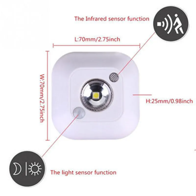 Миниатюрный беспроводной светодиодный ночсветильник с сенсорным датчиком, сенсорсветильник лампа с пассивным ИК датчиком движения для настенных шкафов, лестниц