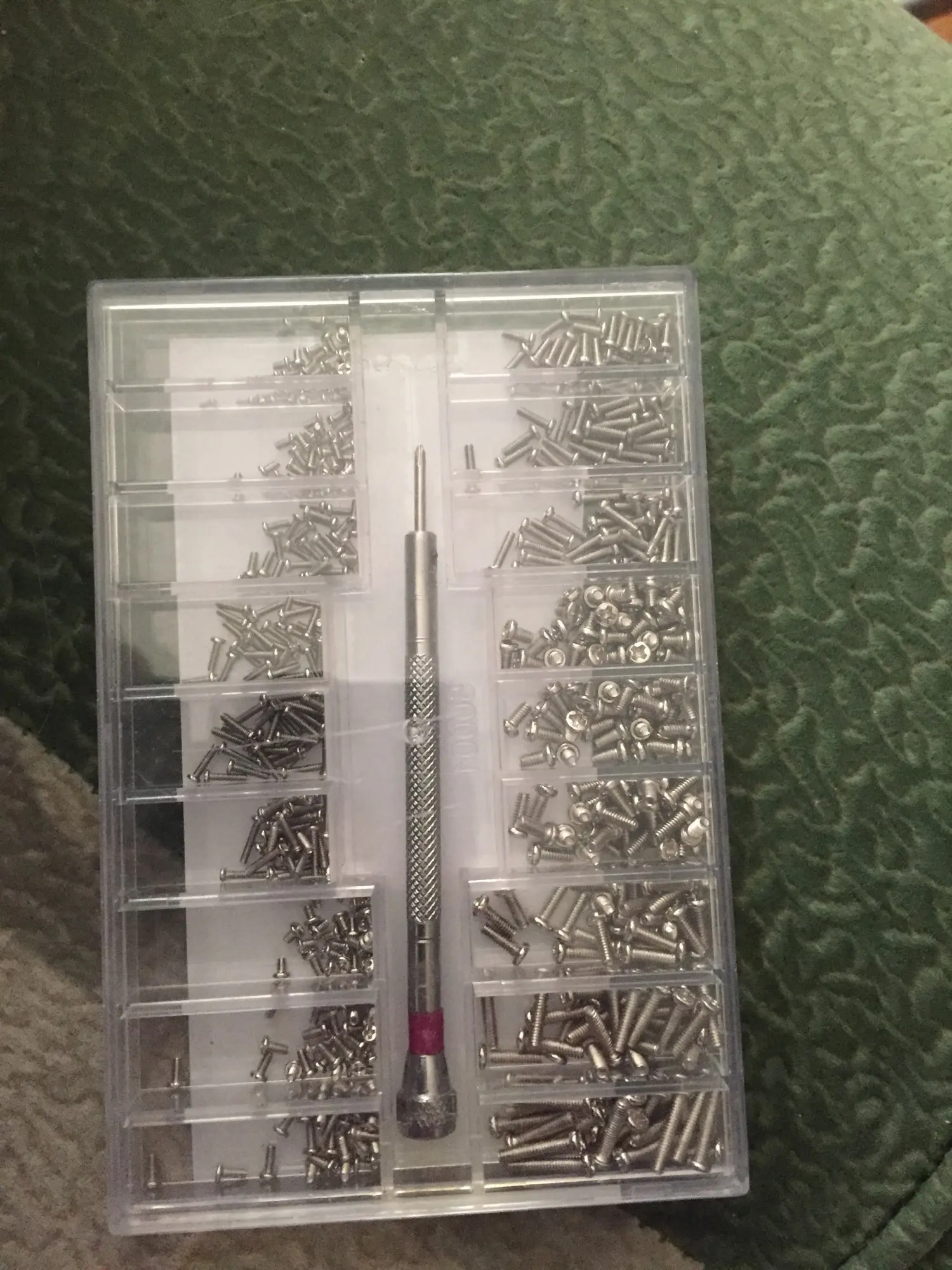 Хороший и необходимый набор мелких винтиков в хорошем пластиковом коробке !