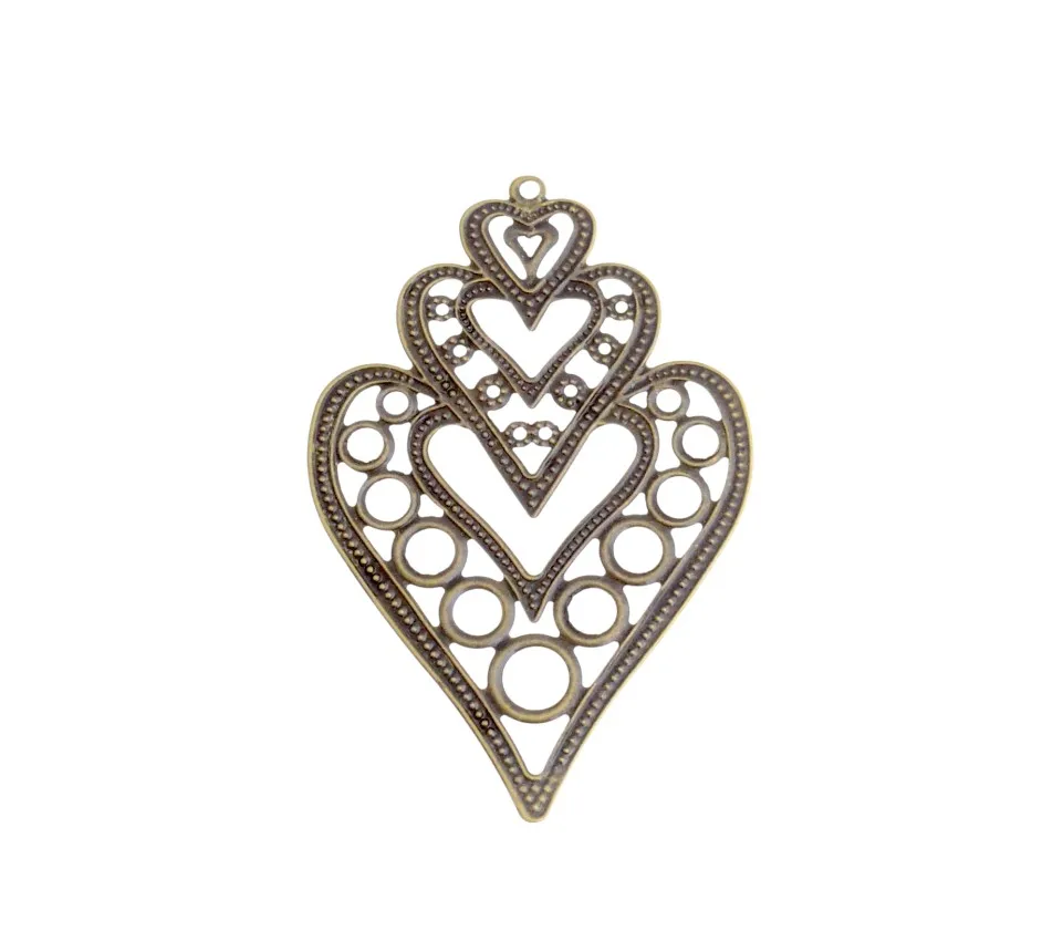 10 шт., коннекторы для подвесок в форме сердца, 55 х85 мм