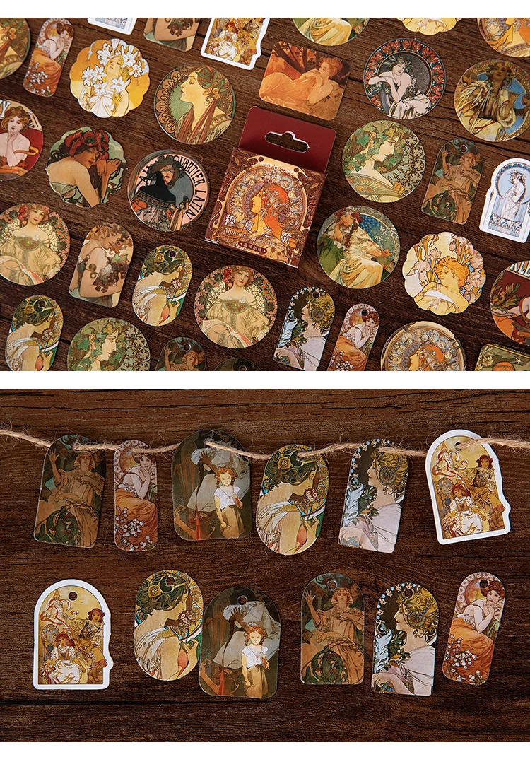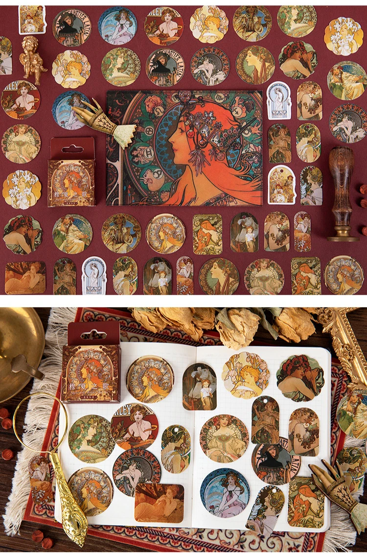 45 шт Альфонса Мухи стикер для канцелярских товаров кавайные этикет...