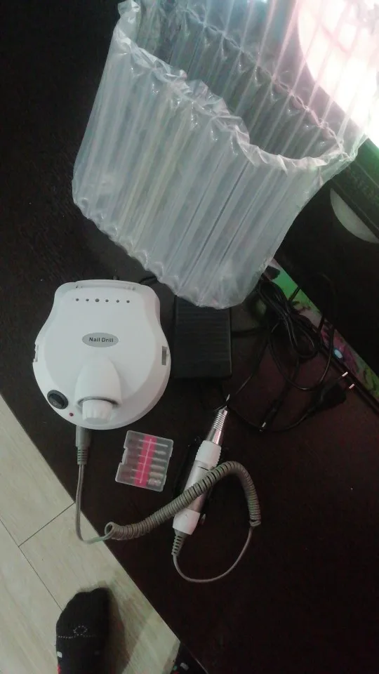 Машинка за свои деньги просто пушка, после аппарата на 20000 оборотов-небо и земля. Сама машинка легкая, в руке не вибрирует совсем(опять же сравниваю со старым свои аппаратом) в комплекте идут фрезы, педаль, подставка на аппарат для ручки, и просто отдельно подставка для ручки. Заказала данный аппарат 11.02, пришло 22.02, но я попала в Китайский Новый год и машинку отправили только 18.02, так бы пришла ещё быстрее. Заказывала из России. Заказом довольна! Доставка быстрая! Единственное что смутило, что машинка пришла без коробки, в воздушной подушке( не знаю как она правильно называется), но пришло все целое. Советую к покупке!