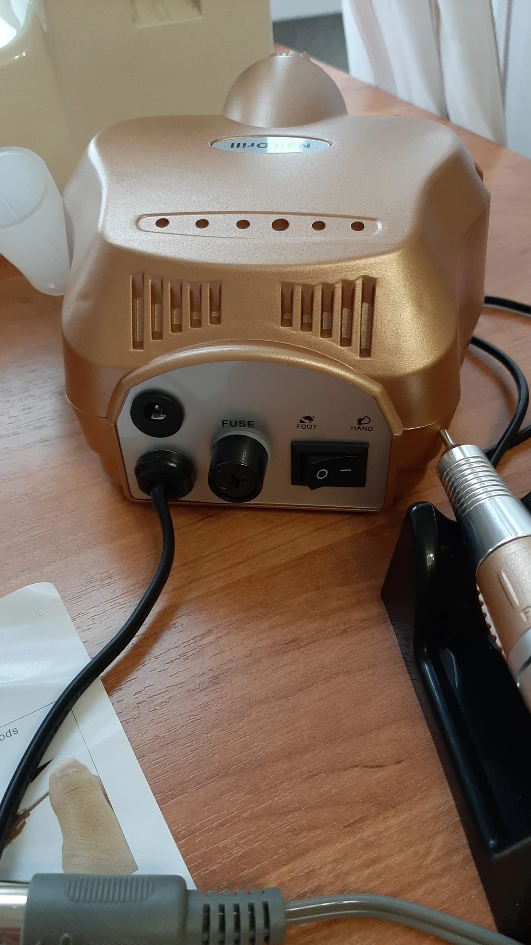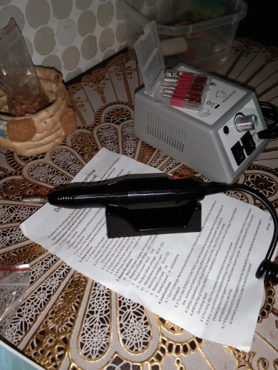 Очень довольна заказом даже немного попробовала но так как я новичок мне ещё надо научиться так как ногти делаю только себе. Есть небольшое не схождение по шву сзади но на работу это не влияет. Ручка в руке не вибрирует все очень отлично. Продовца и товар рекомендую.