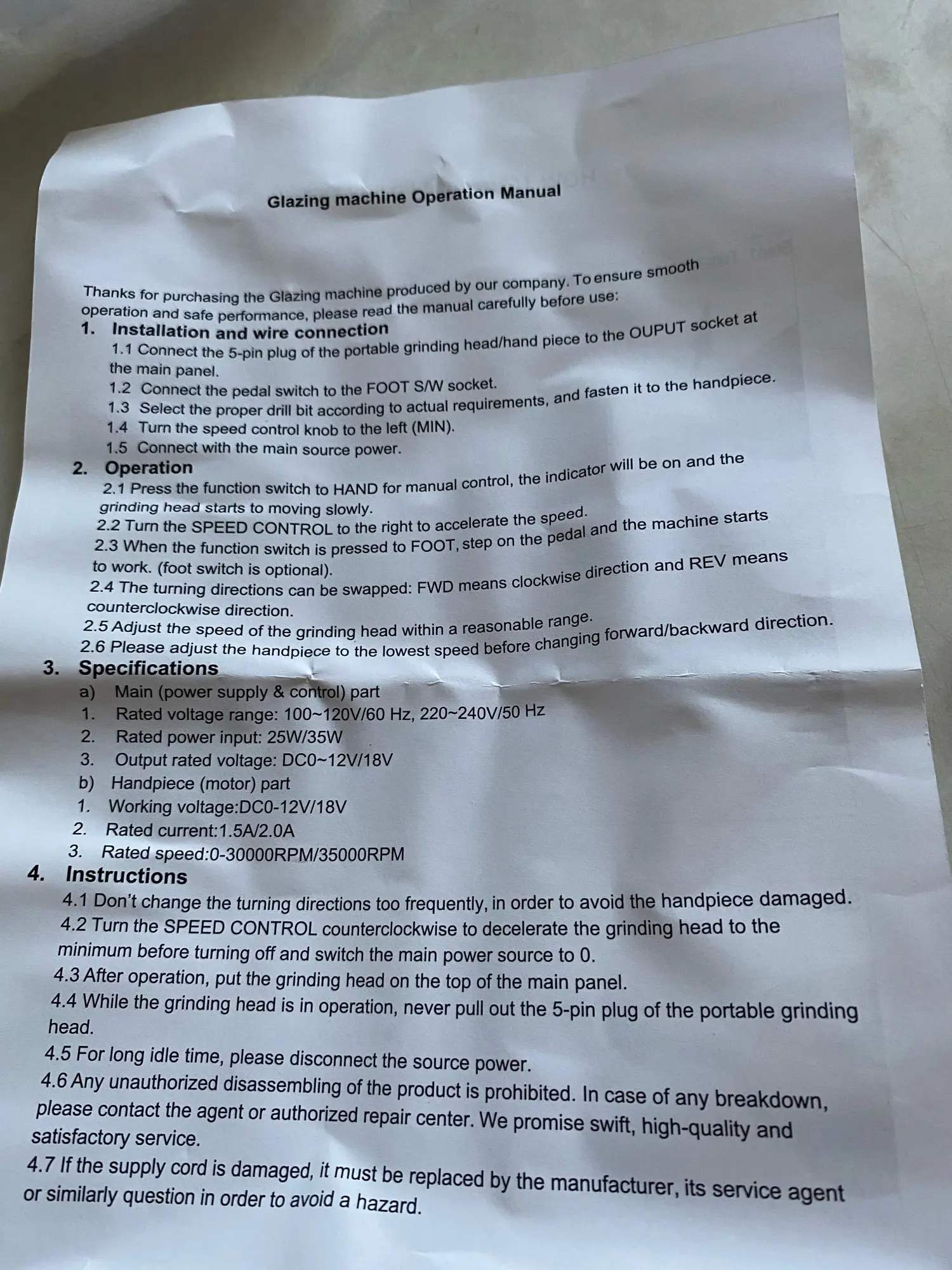 Машинка для маникюра пришла в хорошем состоянии, все работает, работает без вибрации, практически без шума, только не разобралась как работает педалька. Очень довольна заказом, советую продавца.Товар пришёл очень быстро за 5 дней до Владивостока.