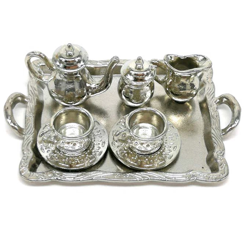 10 шт.компл. кукольный домик, миниатюрная металлическая чайная кукла, мебель для дома, миниатюрная обеденная посуда, игрушечный чайник, тарелка для чашек