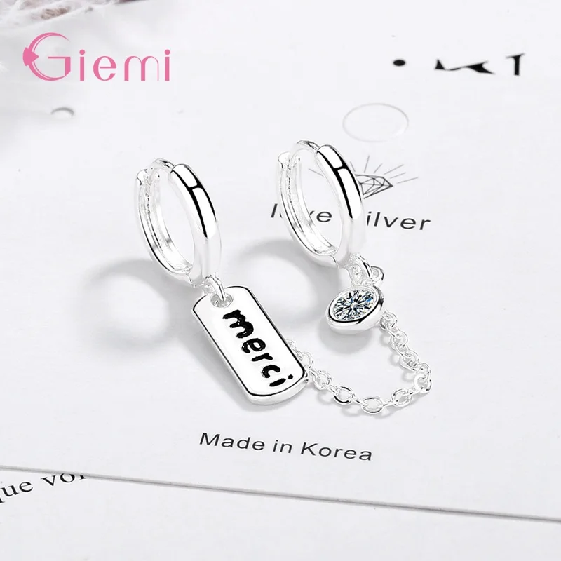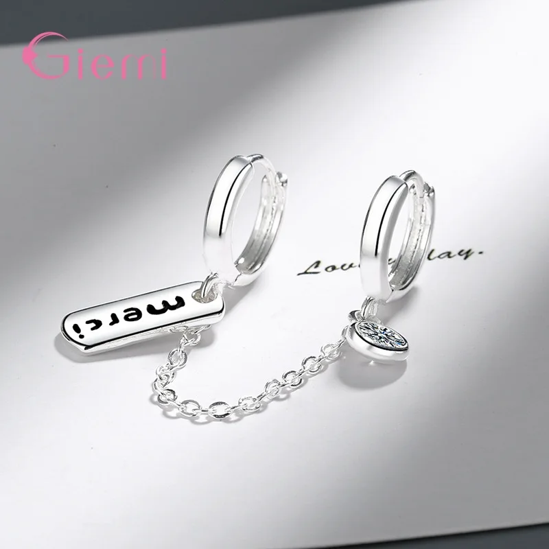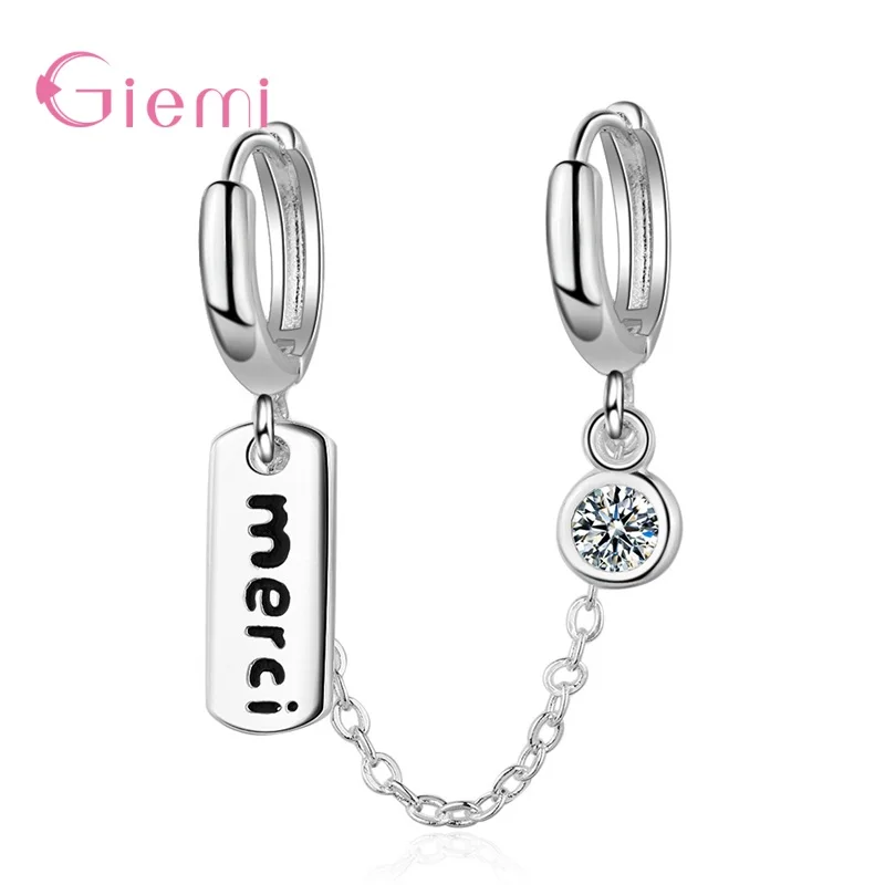 Женская мода два проколотых ушей пирсинг серьги в виде колец цепь к...