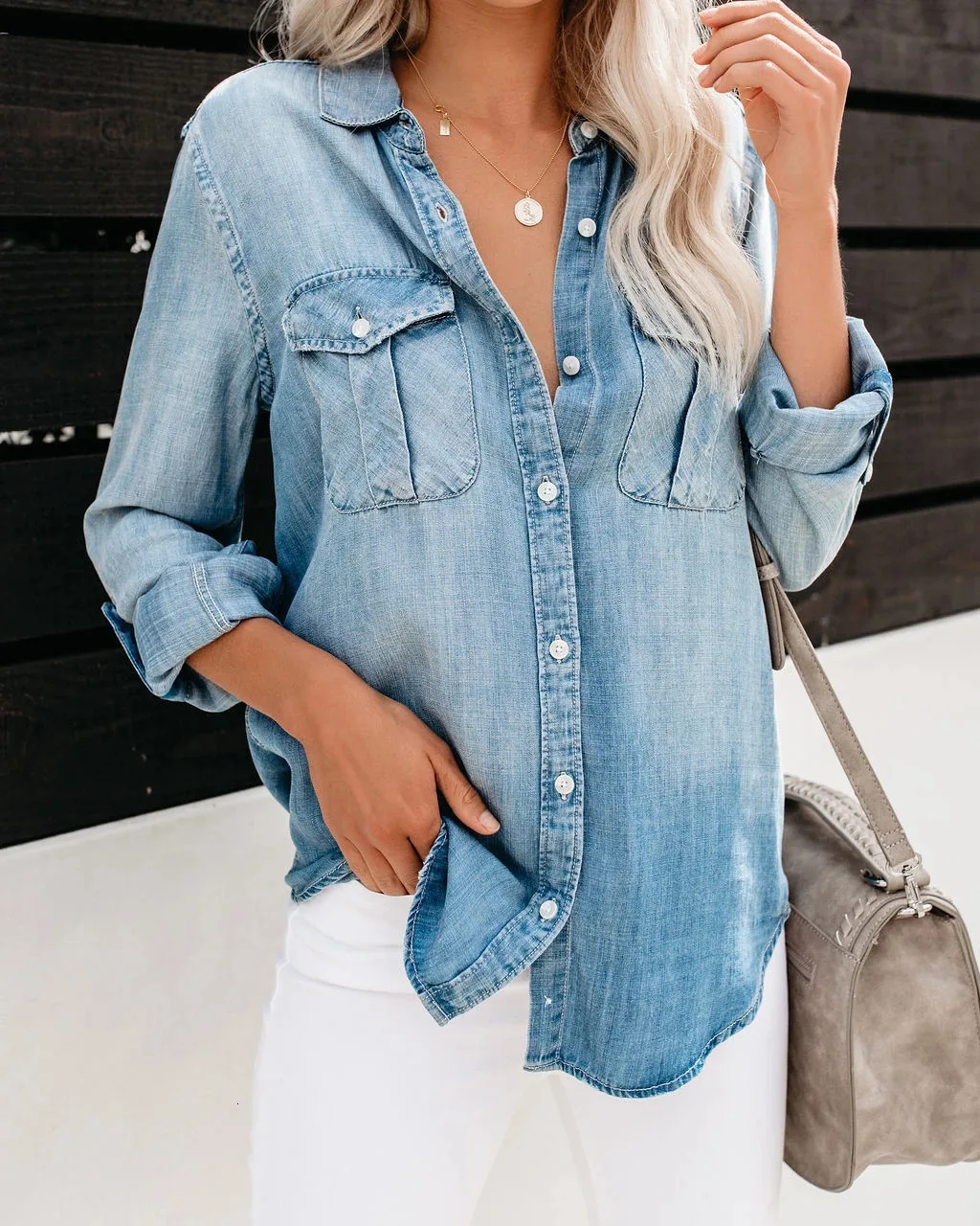Женские модные джинсовые рубашки, Повседневная Уличная одежда, свободные джинсовые блузки с длинным рукавом, рубашка с карманами, топы для женщин, Harajuku Femme, одежда 2019