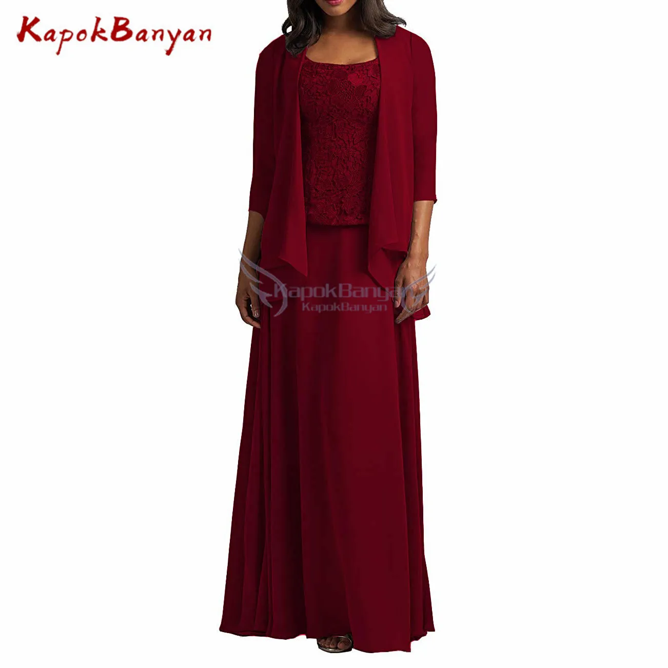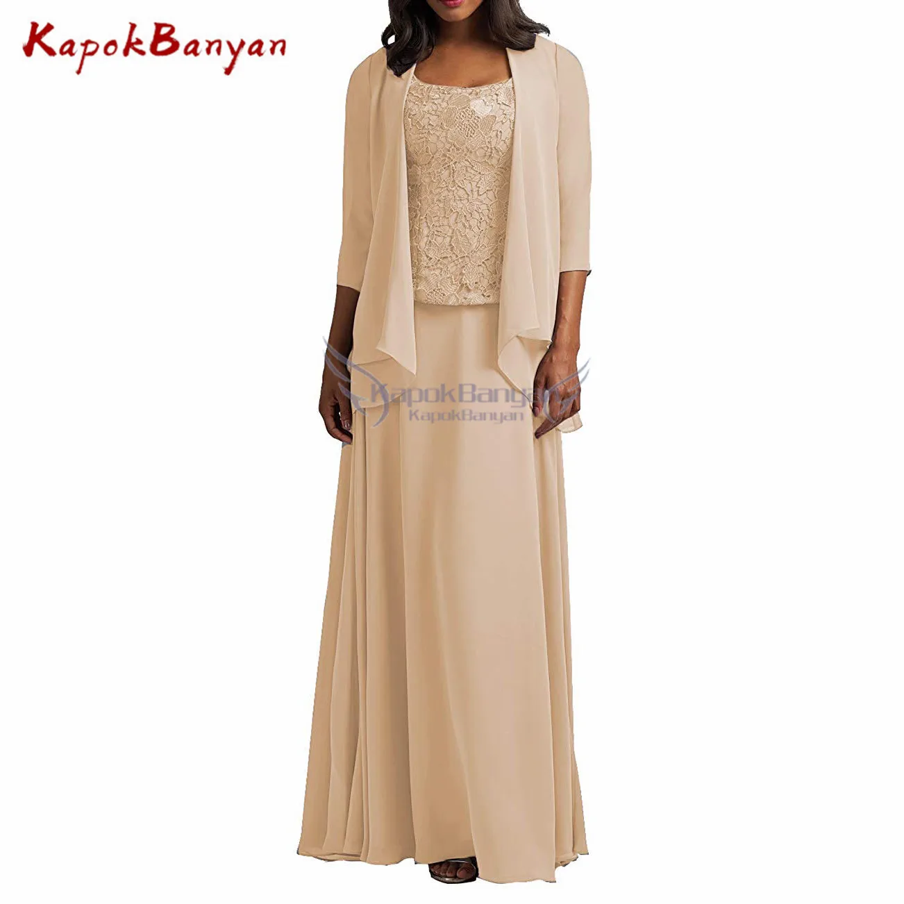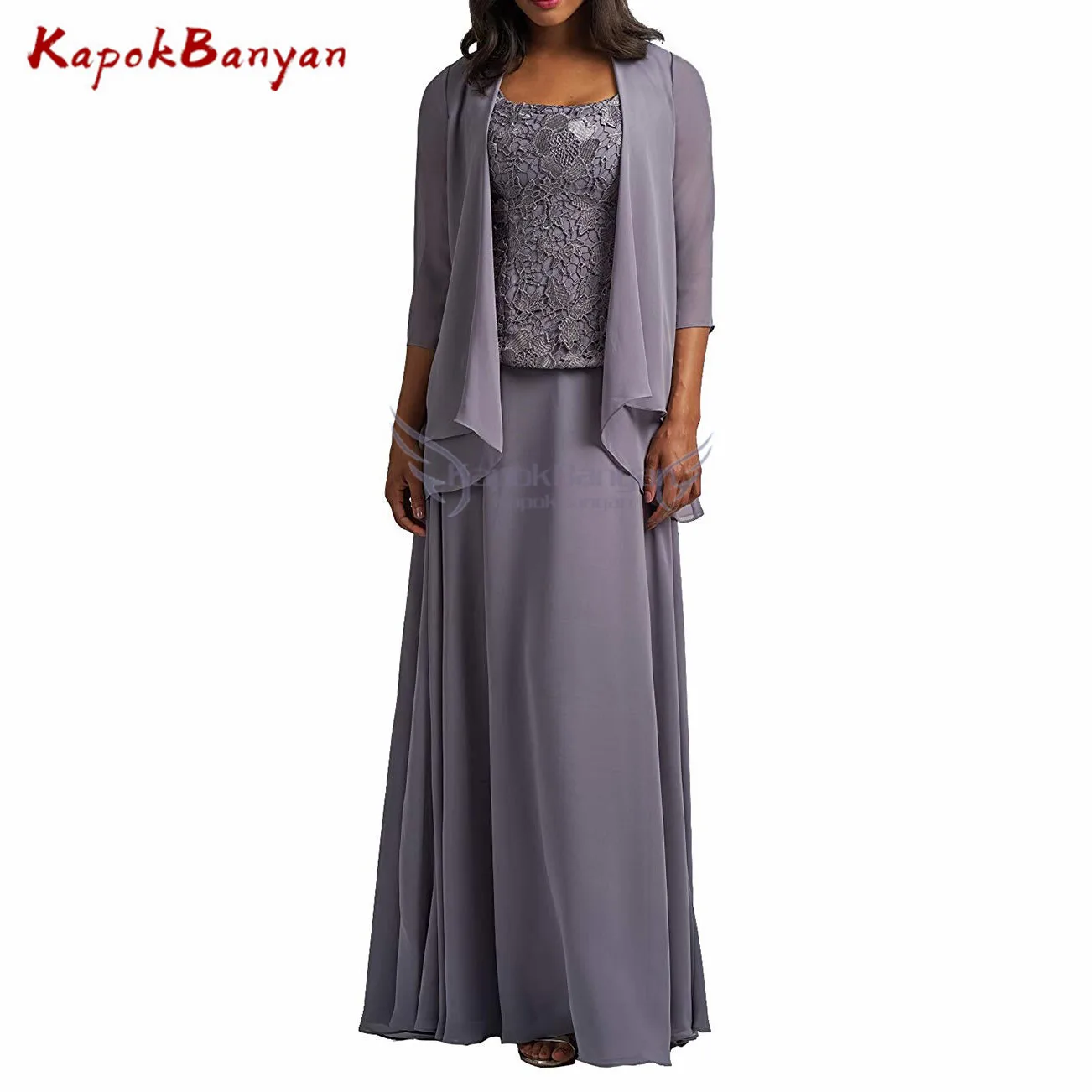 Платье для матери невесты, шифоновое, ТРАПЕЦИЕВИДНОЕ, кружевное, в пол, 3 шт.