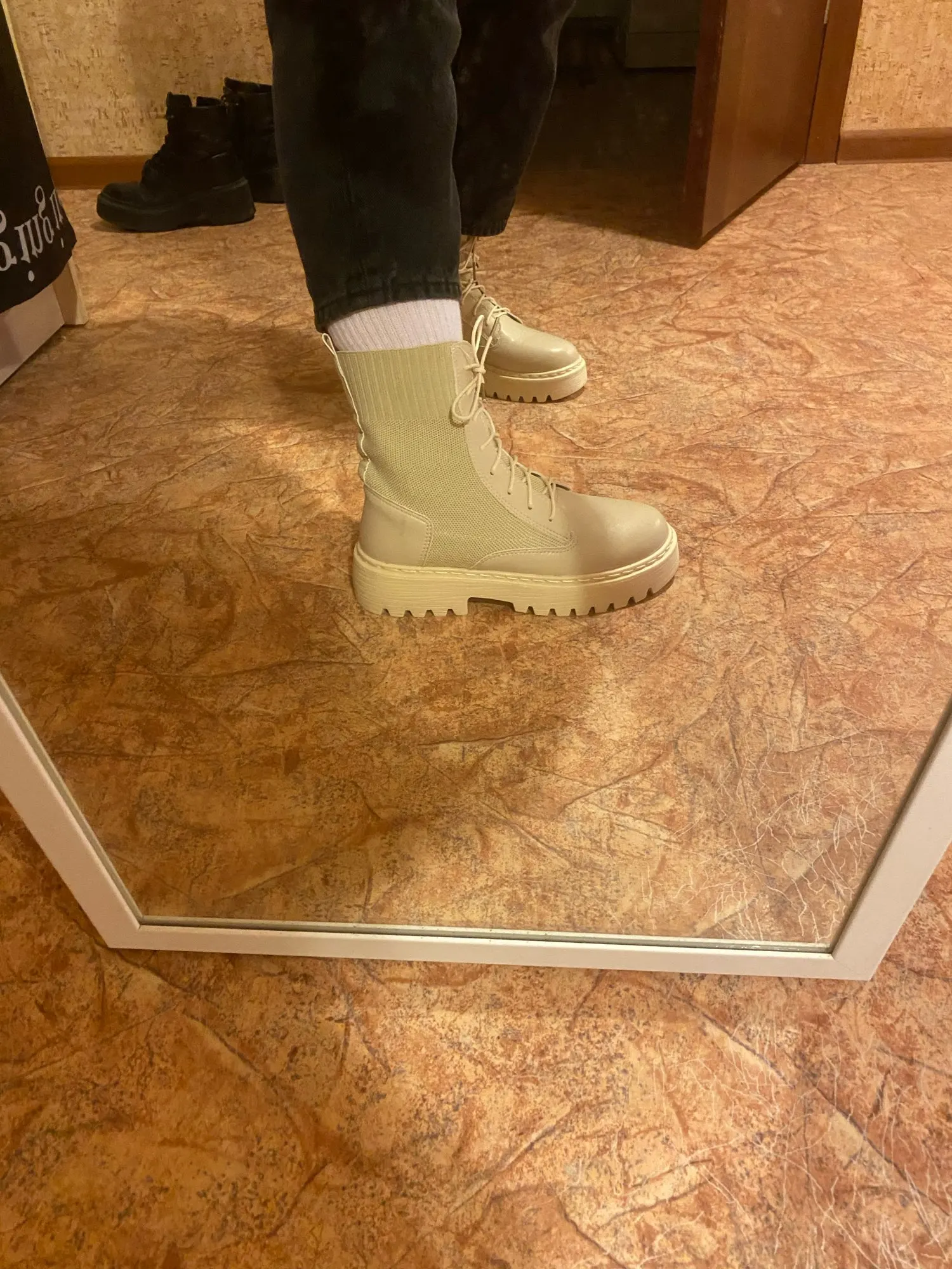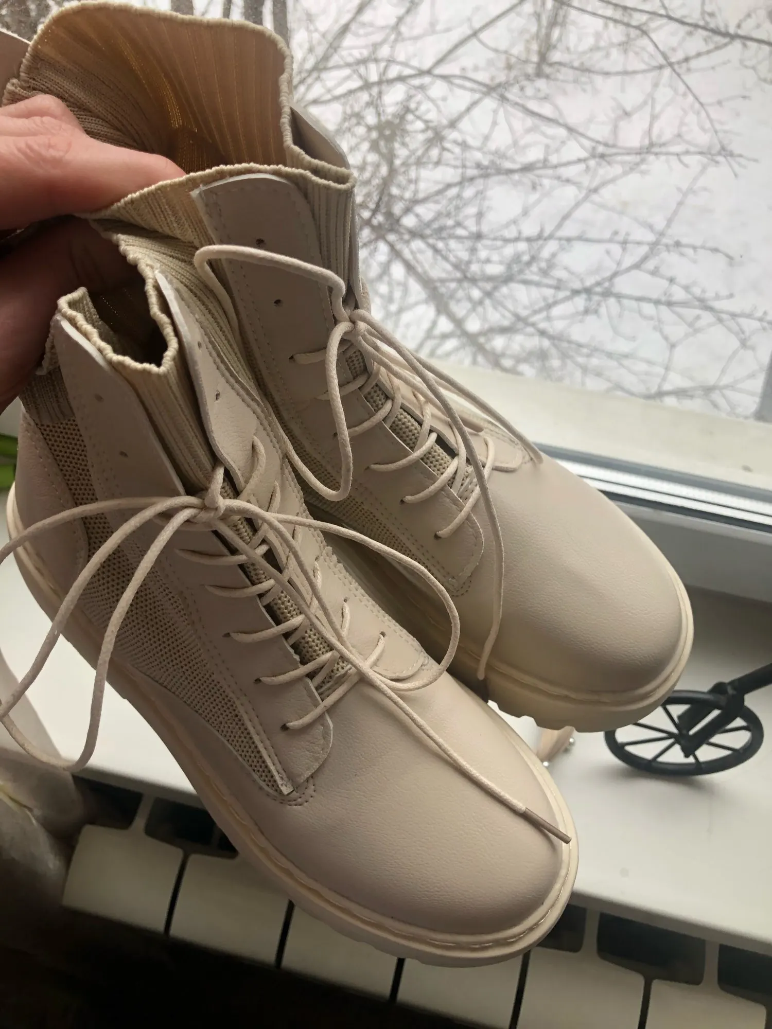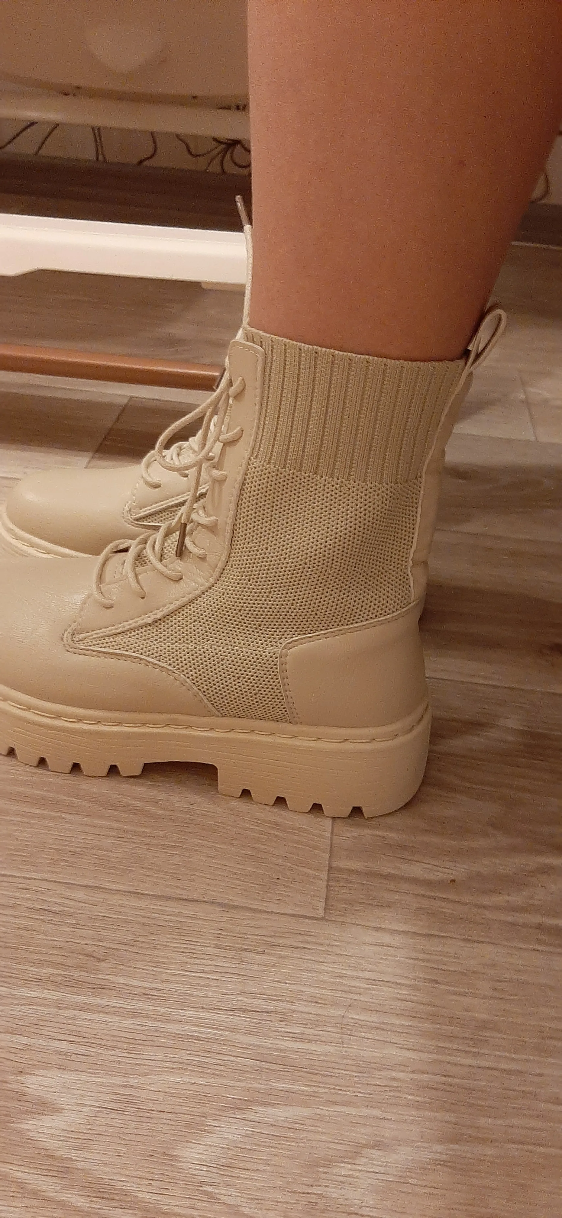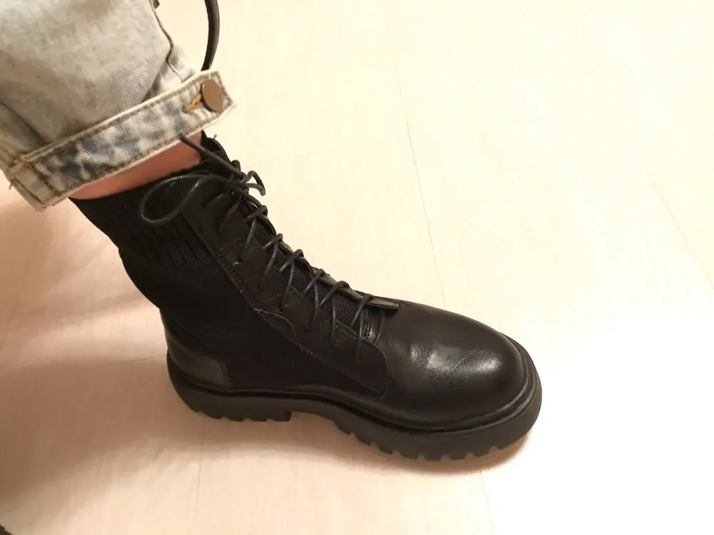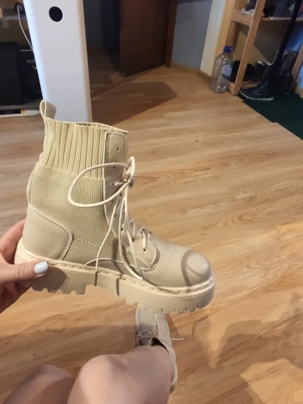очень понравились боты. взяла на размер больше (у меня 35 рус - 22.5 см) подошли, чуть с запасом. меньшие бы тоже были хороши. упакованы были в качественно. дошли очень быстро, в пункт выдачи. жить будут, наверняка, недолго, но я знала это, когда заказывала (если сильно затянуть шнурки, можно порвать петли). резинка хорошая, прошиты, легкие, без дефектов)