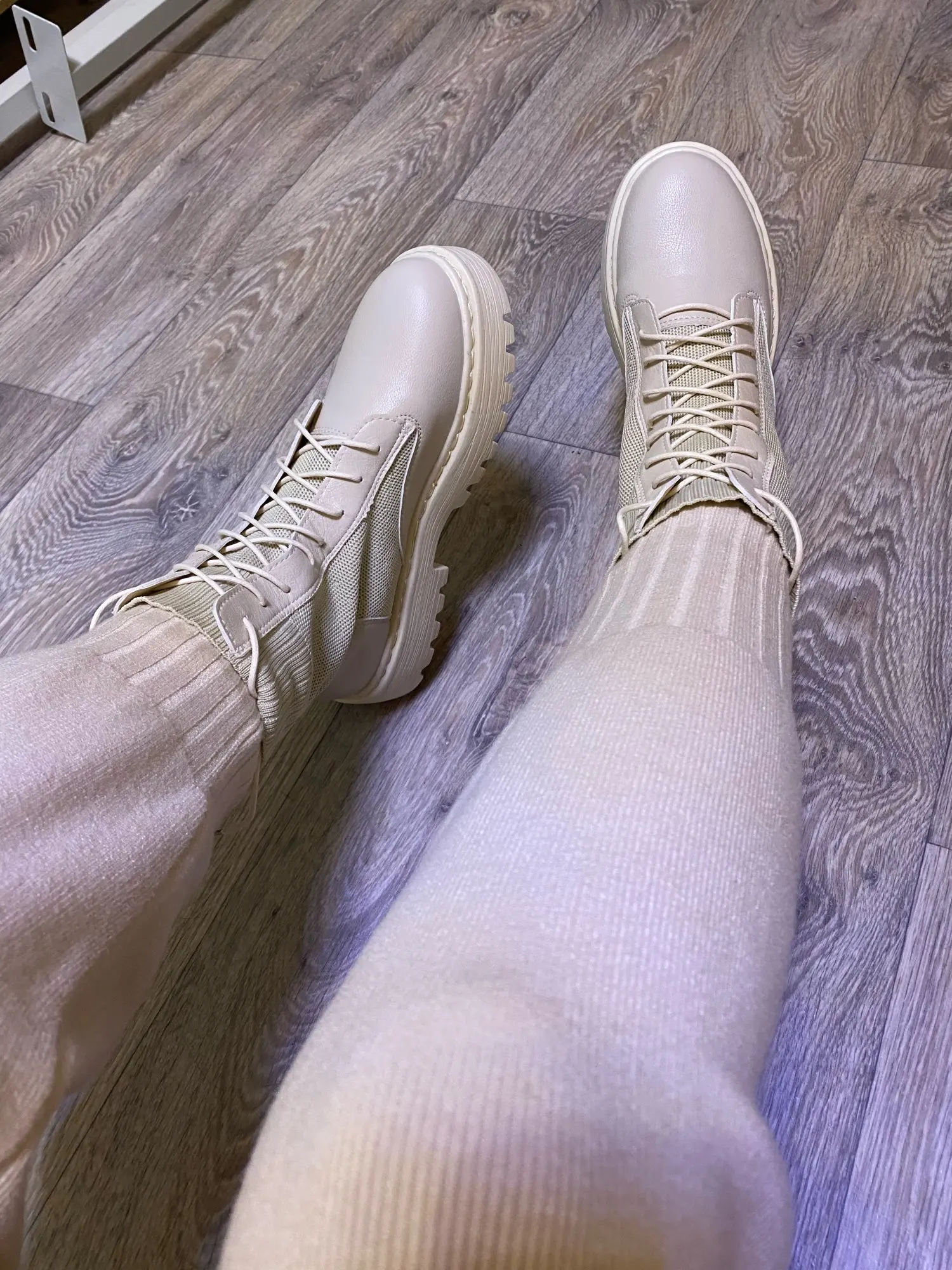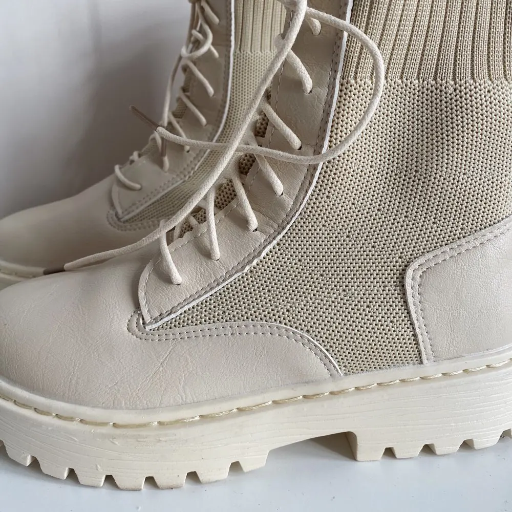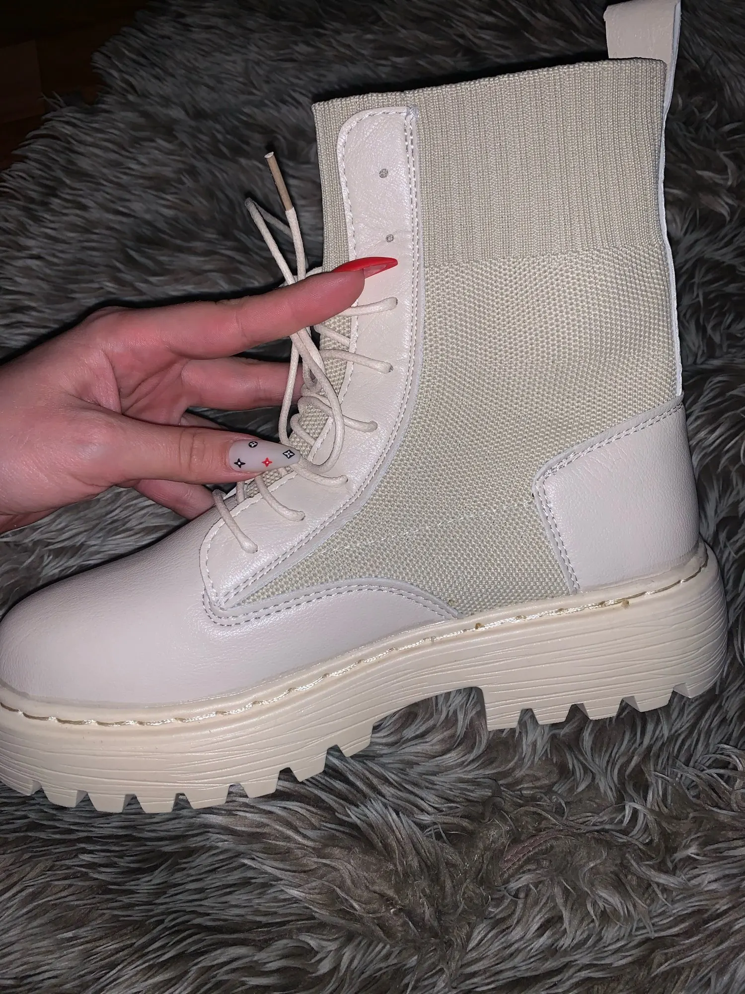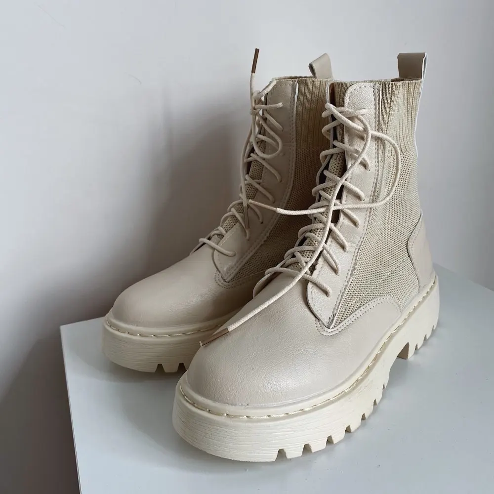 очень понравились боты. взяла на размер больше (у меня 35 рус - 22.5 см) подошли, чуть с запасом. меньшие бы тоже были хороши. упакованы были в качественно. дошли очень быстро, в пункт выдачи. жить будут, наверняка, недолго, но я знала это, когда заказывала (если сильно затянуть шнурки, можно порвать петли). резинка хорошая, прошиты, легкие, без дефектов)