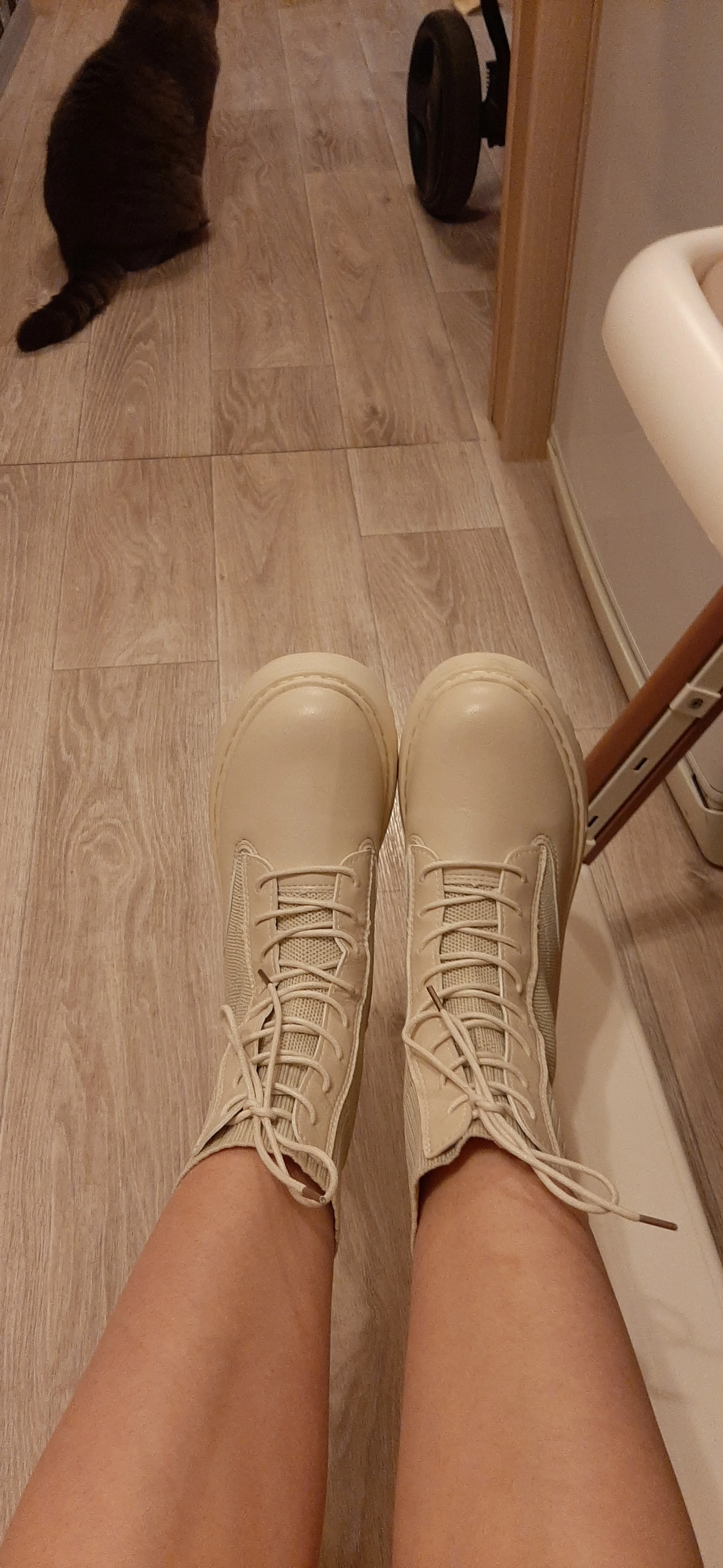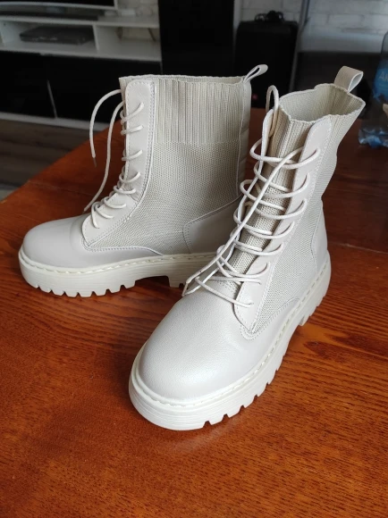 Классные ботинки, взяла размер 6,5 на 37, подошли идеально. Выглядят отлично, ничем не пахнут. Получили кучу комплиментов и удивлений, что эта обувь с али.