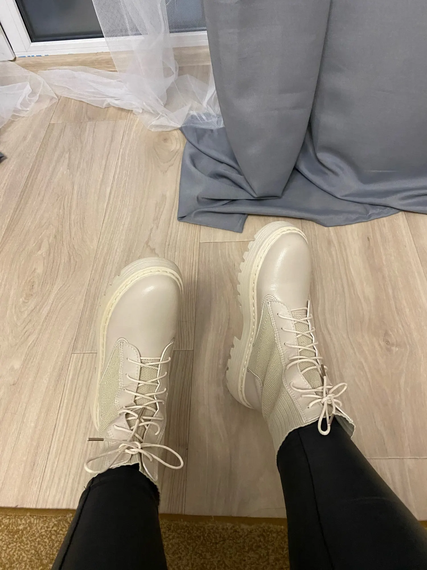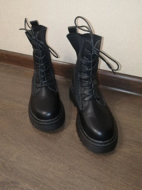 Ботинки один в один как на фото продавца! Качественные. Но на российский 37,5-38 маловаты( чуть упирается палец . Хочется прям чуточку побольше. Отдам сестре, на ее 37 комфортно
