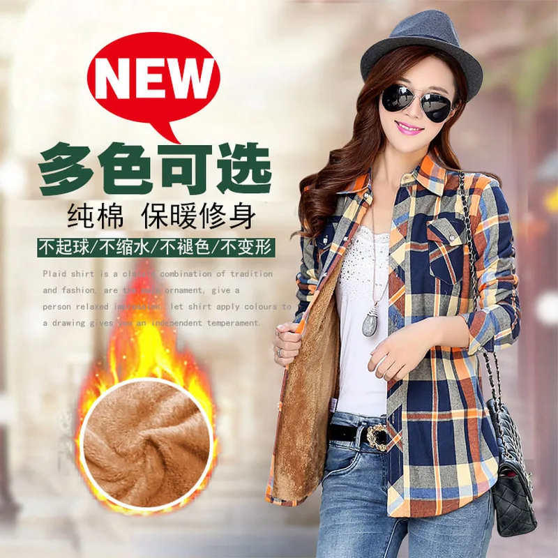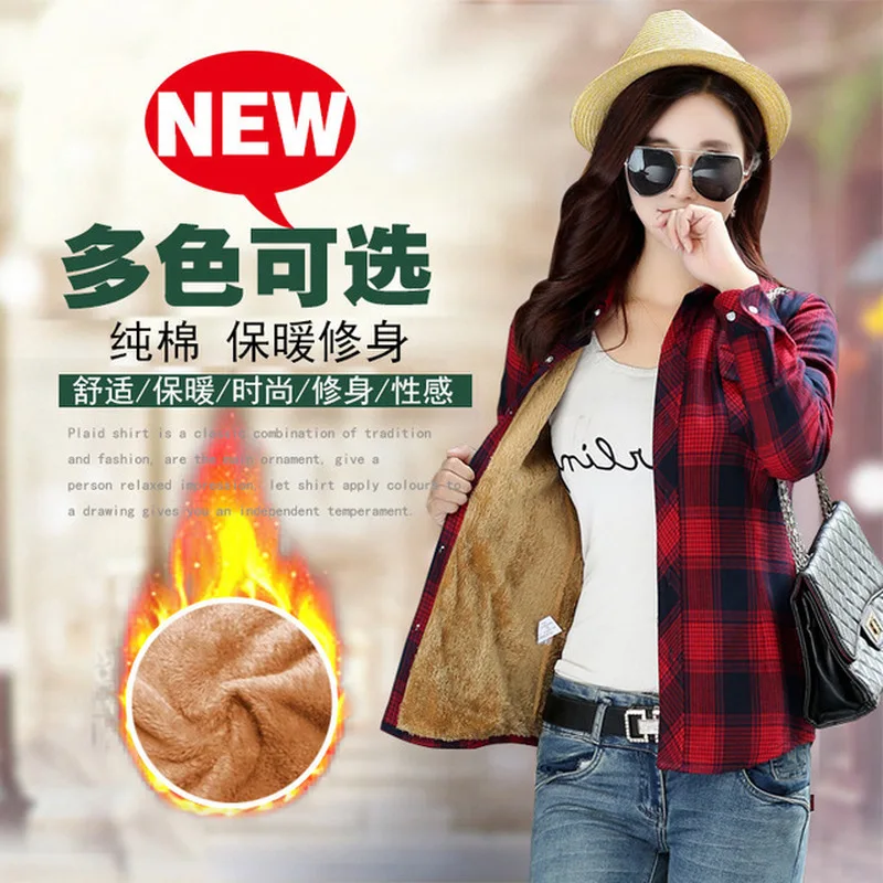 Женское пальто размера плюс, зимние теплые куртки, женская рубашка с длинным рукавом, толстая бархатная клетчатая рубашка, фланелевые рубашки, пальто из хлопка