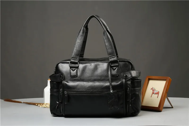 Сумка-тоут мужская кожаная, многофункциональная вместительная сумоч...