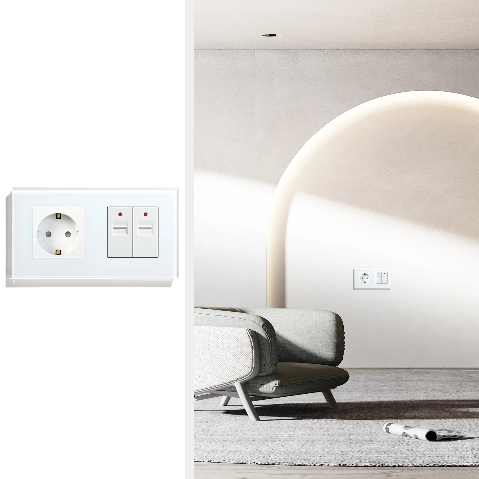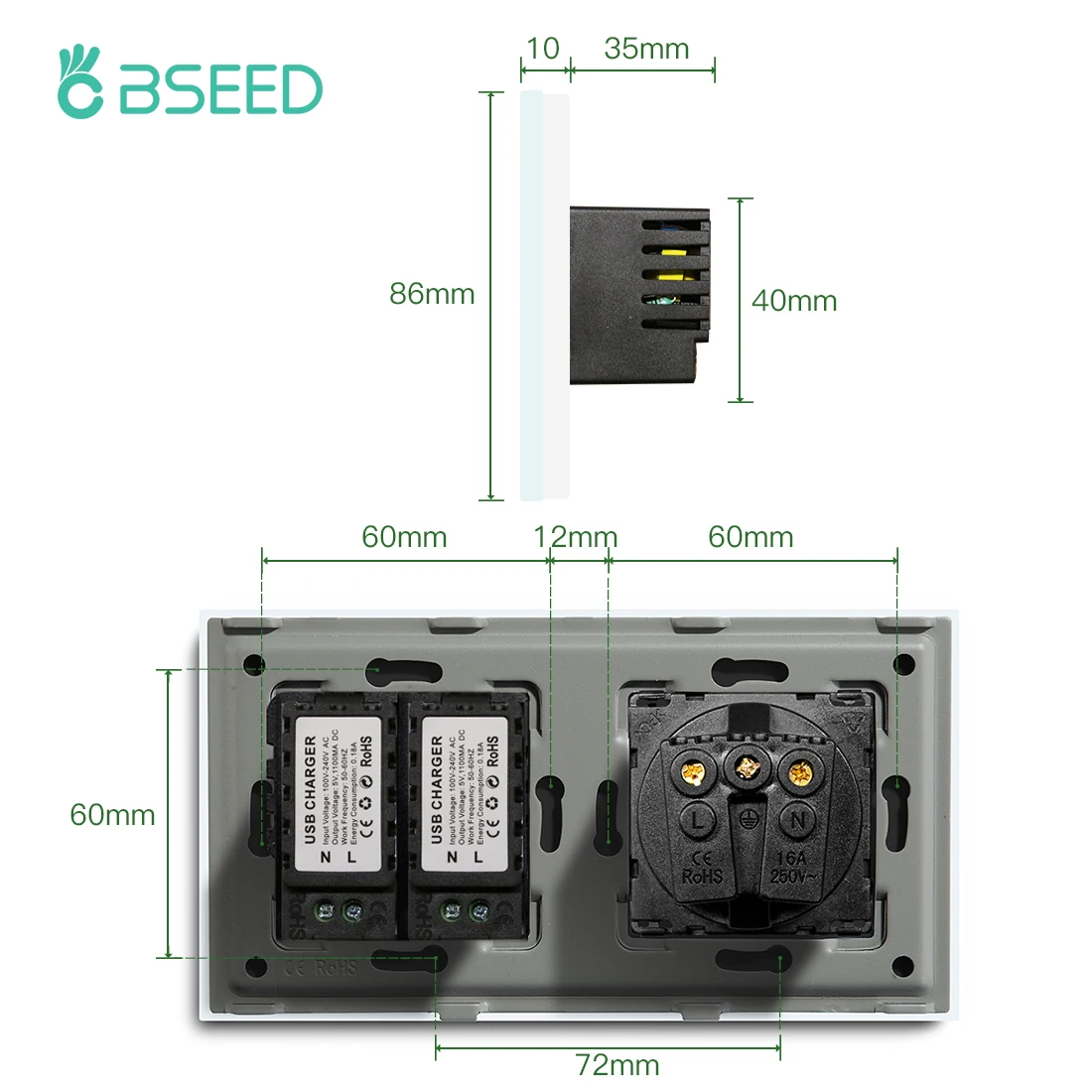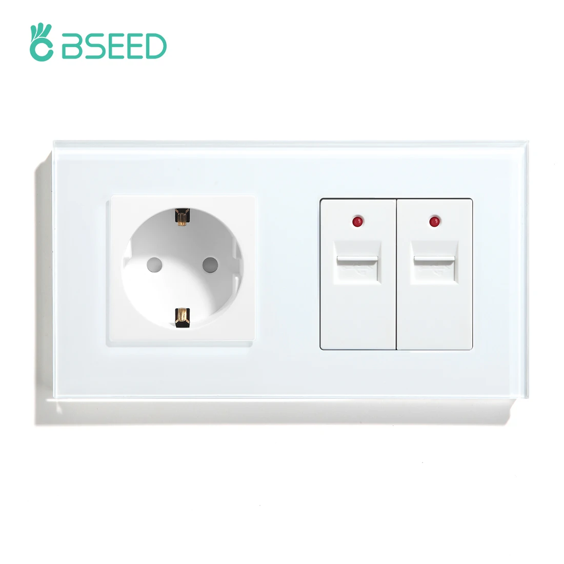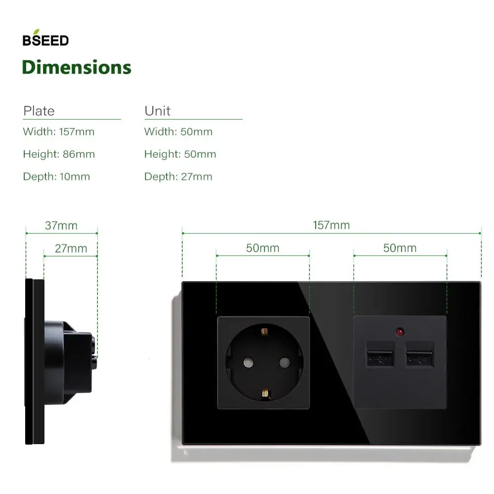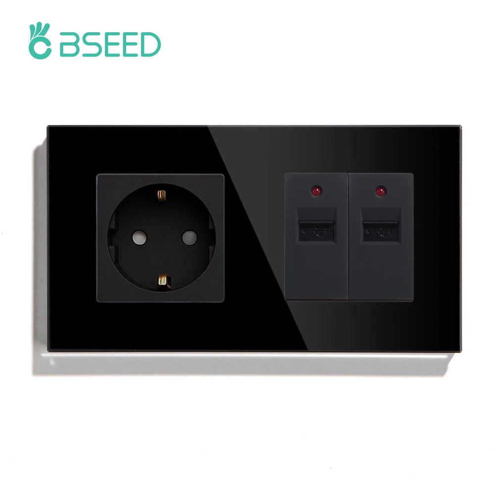 Розетка BSEED с двумя USB-портами и зарядным устройством европейского стандарта, 5 В, 100 А, белая, черная, прозрачная стеклянная панель, 240-в