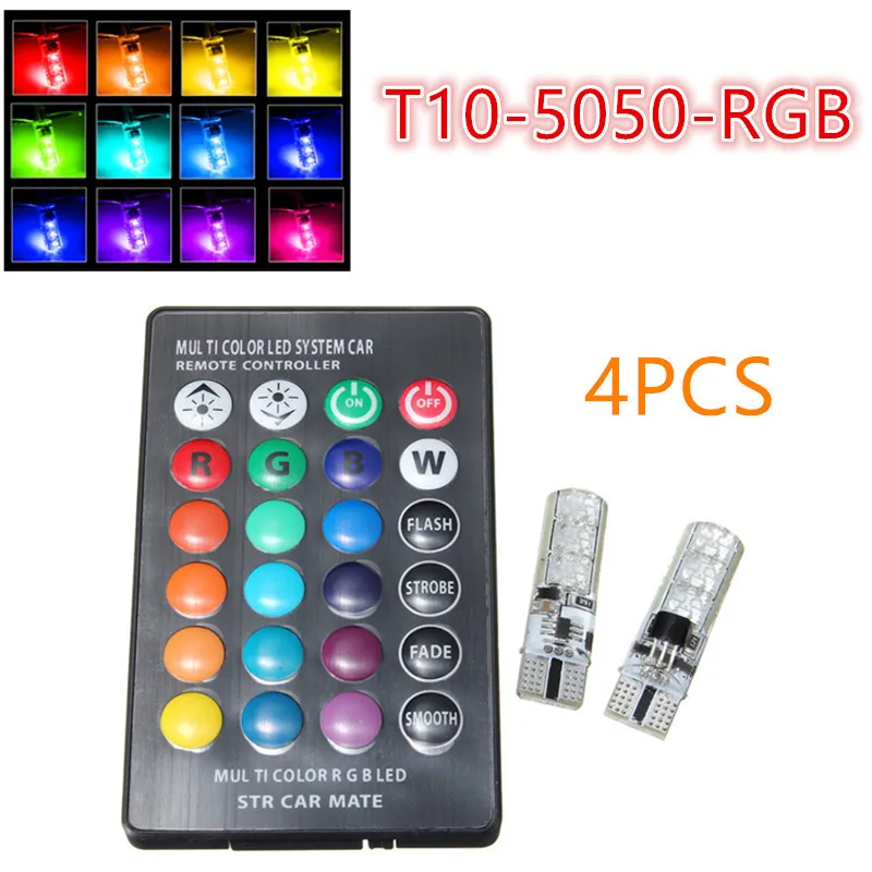 Светодиодные лампы 4 шт.лот, светодиодные лампы RGB 194 168 501, Стробоскопическая светодиодная лампа, лампы для чтения с дистанционным управлением, белый, красный, янтарный, 12 В