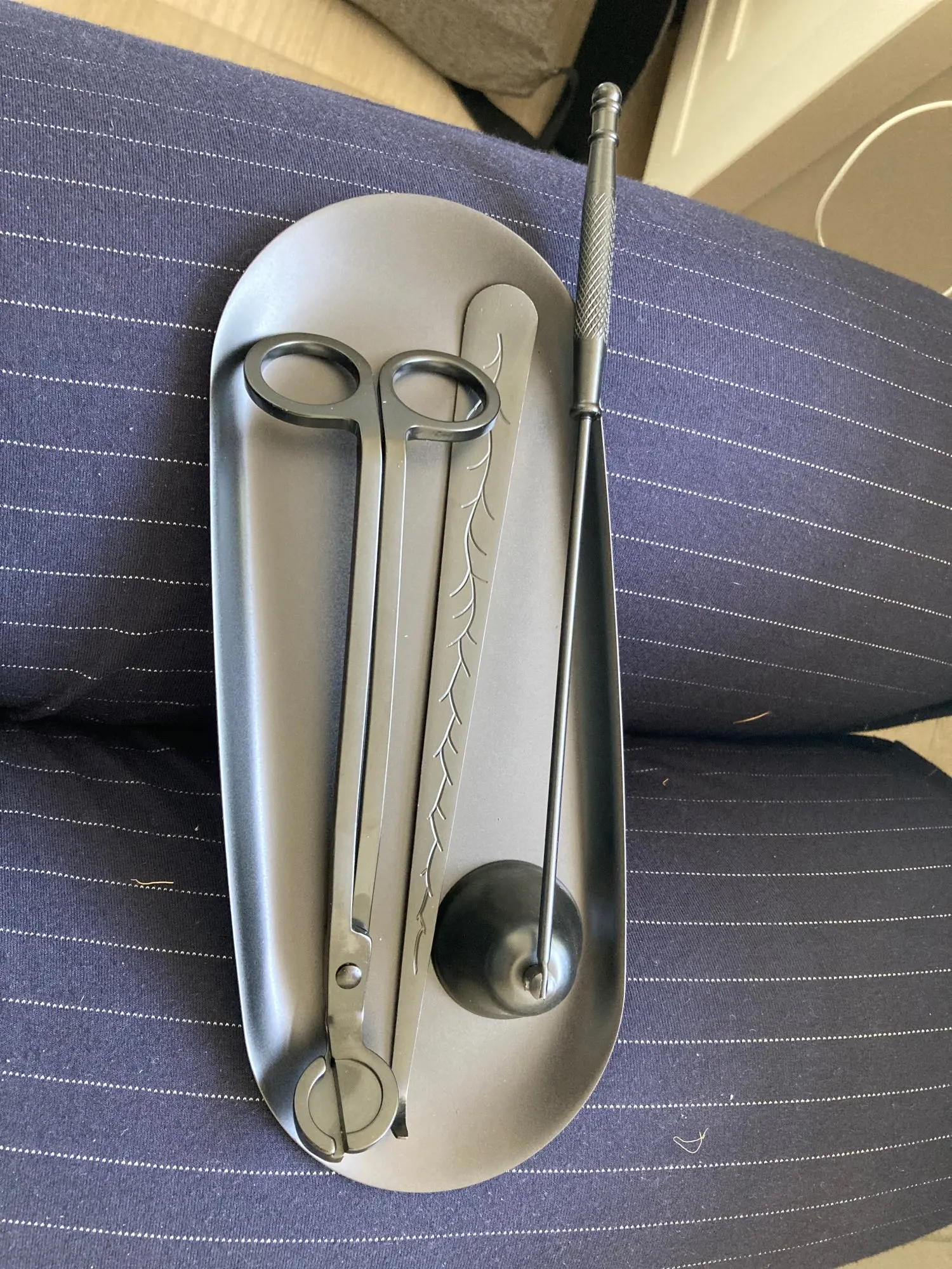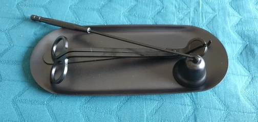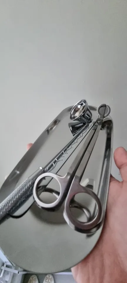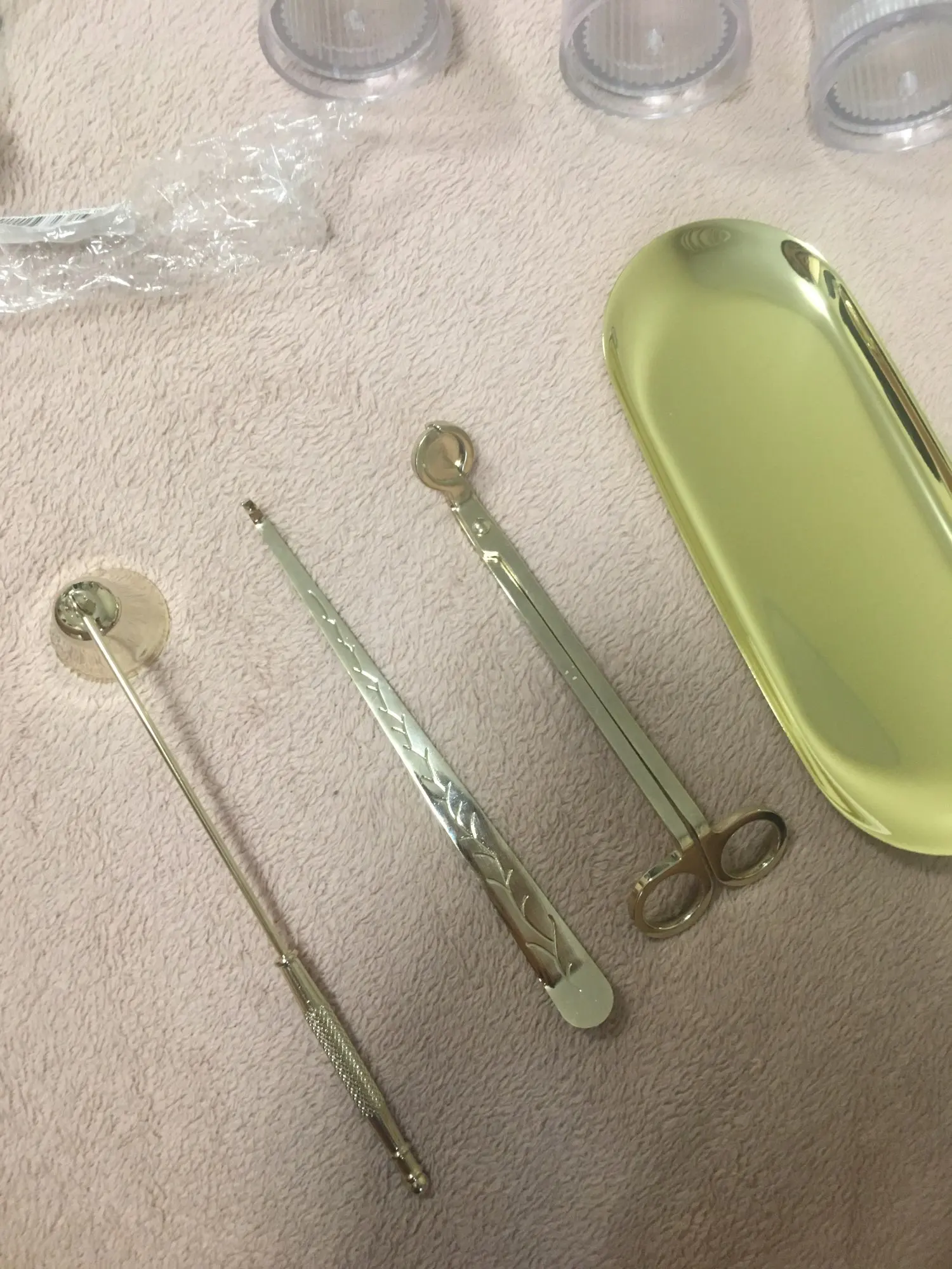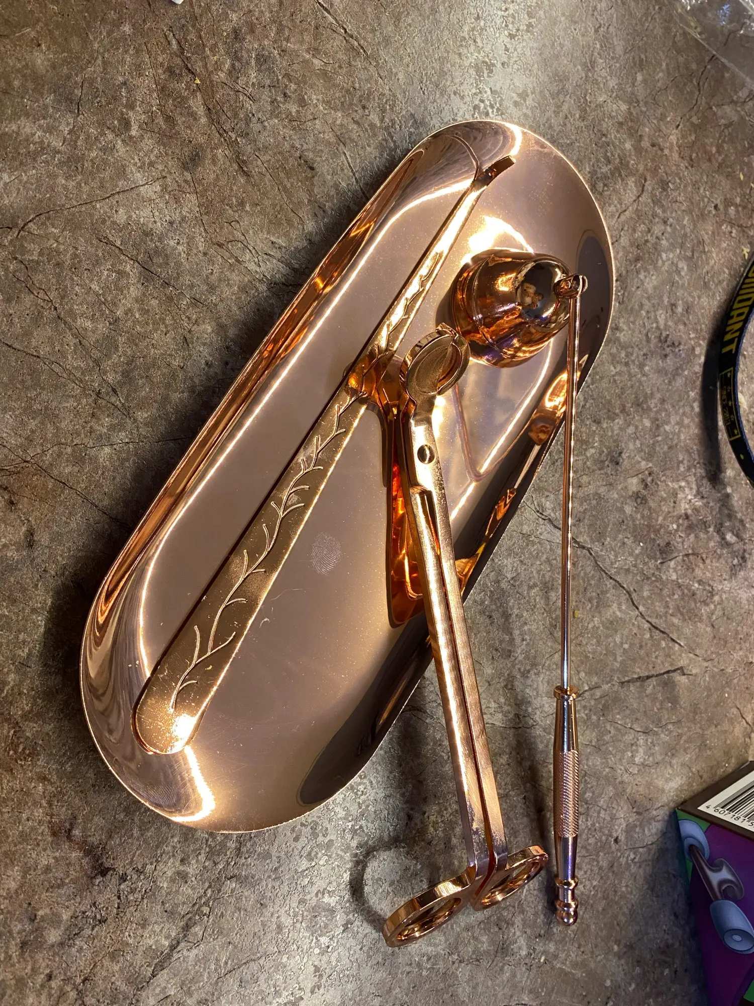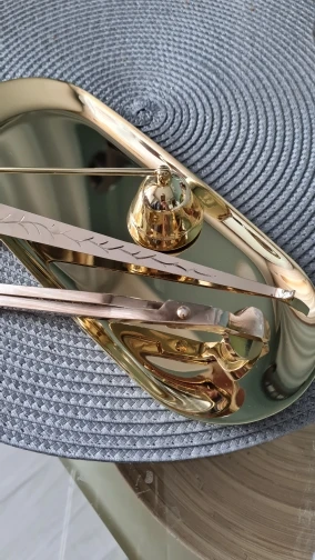 Отличный товар, упаковано хорошо. Дошёл без повреждений, в комплекте поднос, ножницы, гасилка, и инструмент, пока не поняла для чего. Покрытие позолотой, выглядит роскошно, красиво. Качество хорошее. Описание соответствует.