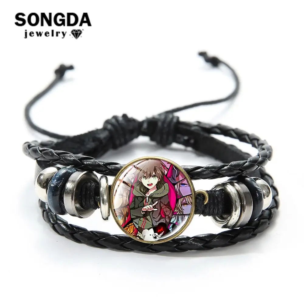 SONGDA Danganronpa: Trigger Happy Havoc Браслет Аниме игры с фигурками из хрустального стекла куполообразные бусины ручной работы кожаный браслет
