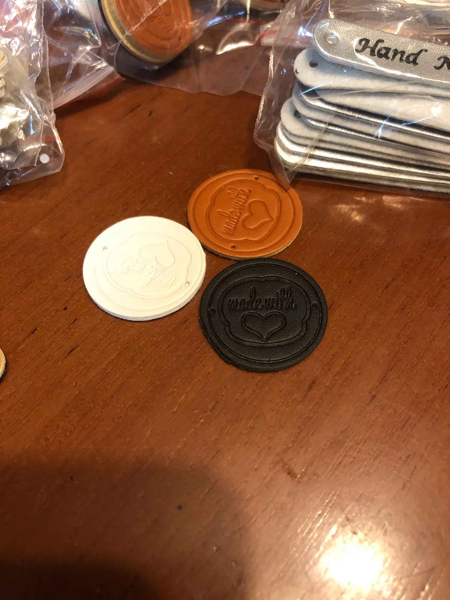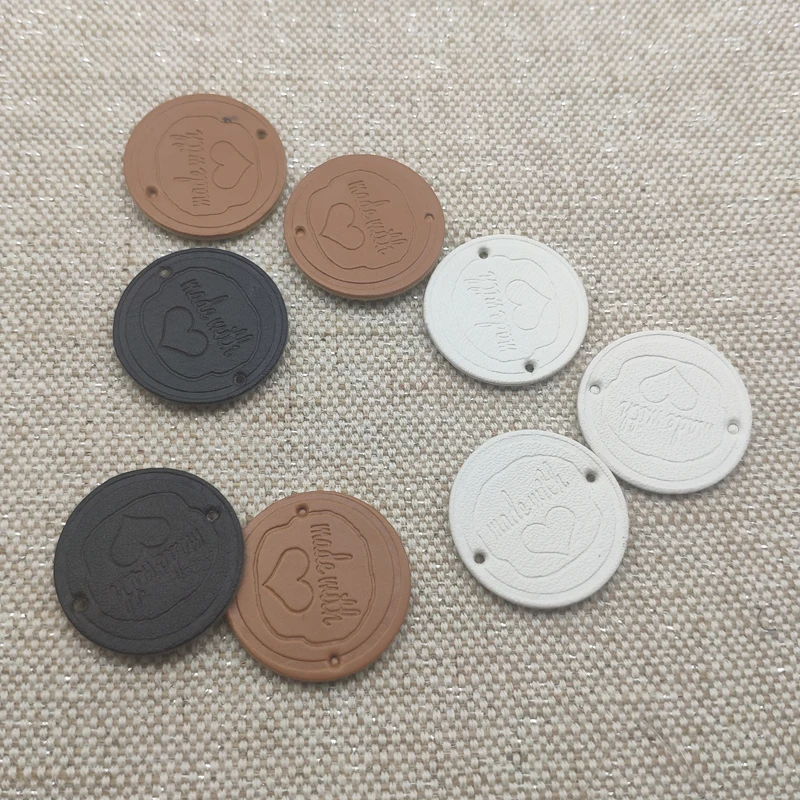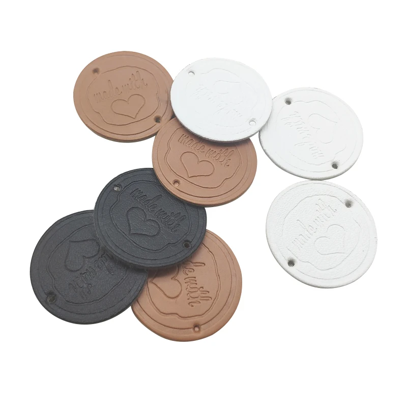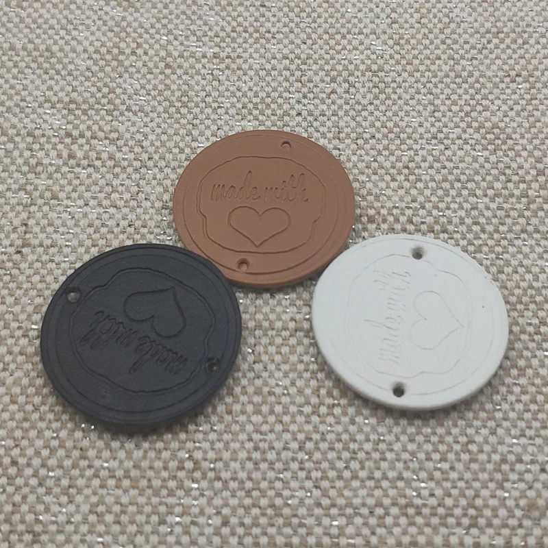 Круглые этикетки из искусственной кожи, 25 мм, ручная работа, с любовным сердцем