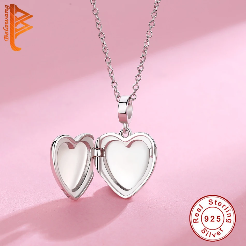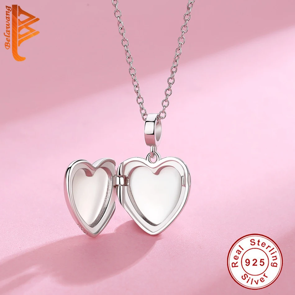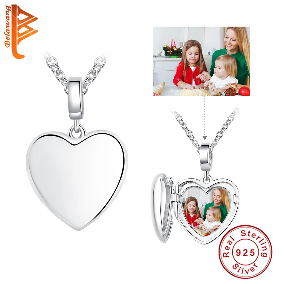 BELAWANG 100% 925 стерлингового серебра любящее сердце пользовательские фото кулон ожерелье для женщин украшения на свадьбу, годовщину