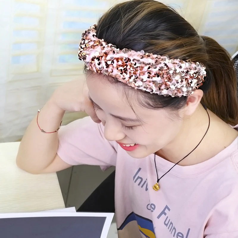 Горячая Женская Блестящая повязка на голову с подкладкой, головной убор, губка, блестящий обруч для волос, блестящий узел, аксессуары для волос, широкая модная Толстая повязка на голову