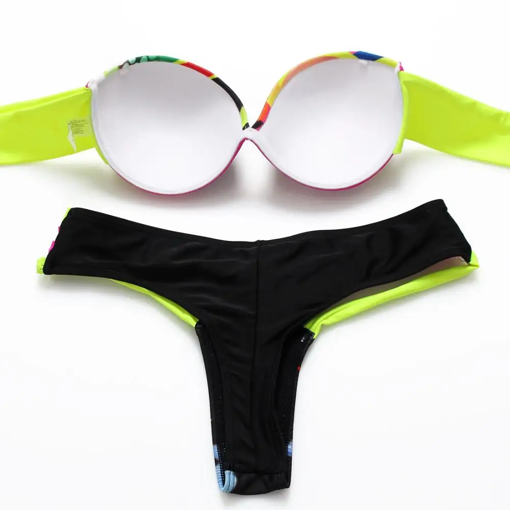 BANDEA, 2019, Одноцветный комплект бикини, сексуальный бикини, пуш-ап, купальник для женщин, купальник с принтом, женская пляжная одежда, бикини, стринги