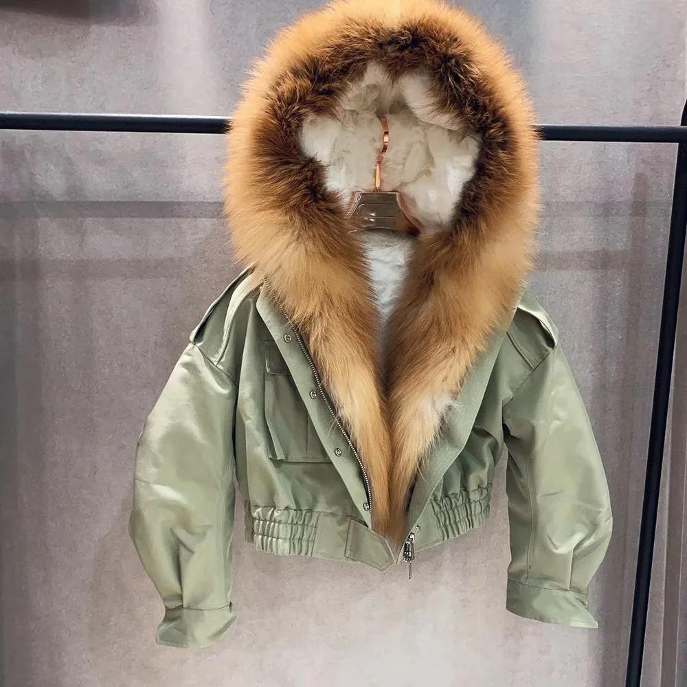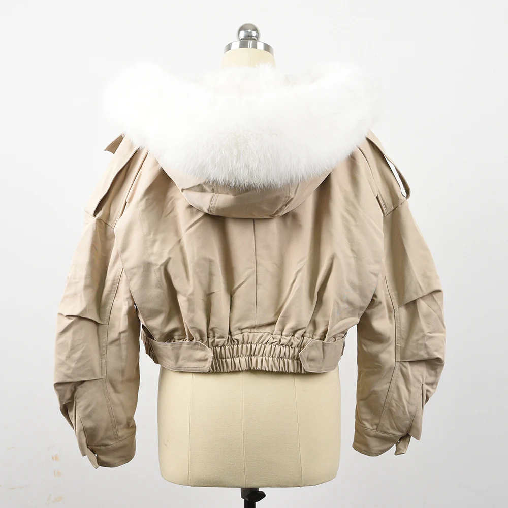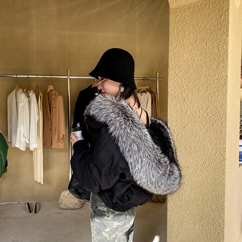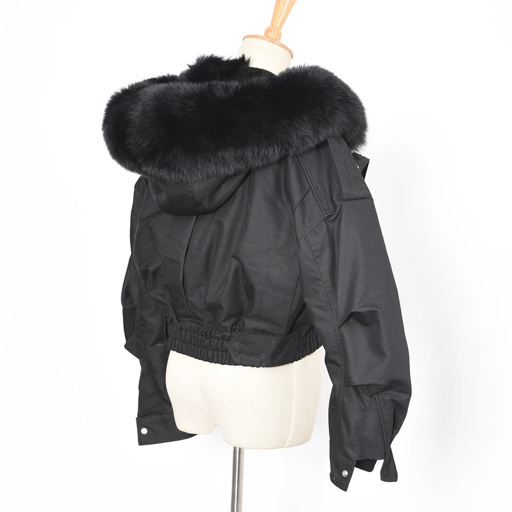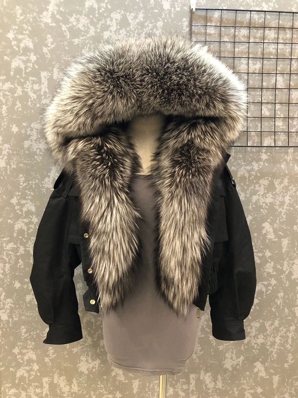 Женская короткая куртка-бомбер со съемной подкладкой из натурального меха овечьей шерсти, короткая куртка с серебристой и красной лисой на воротнике, S7652