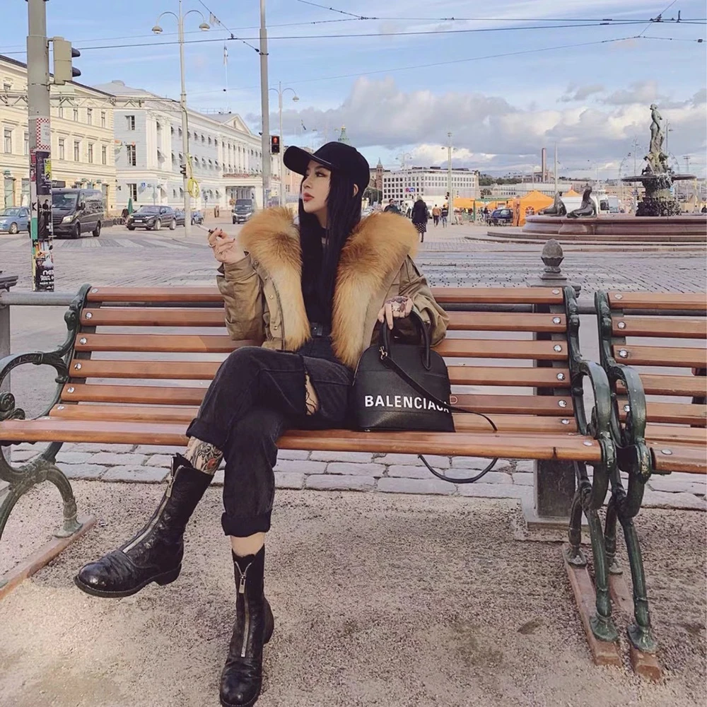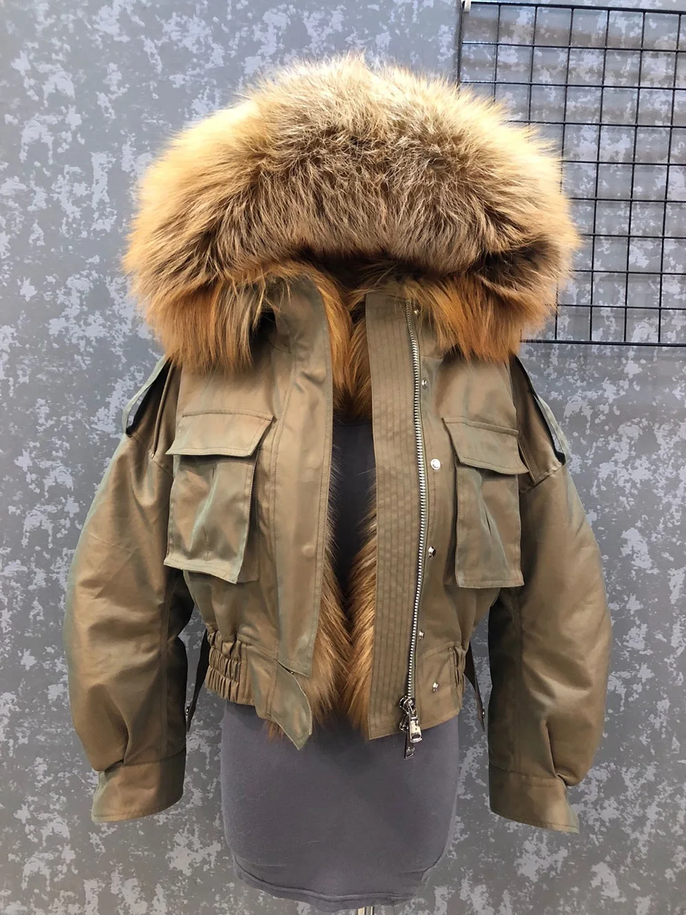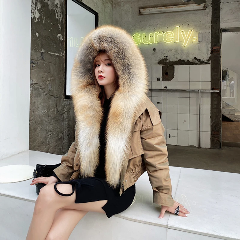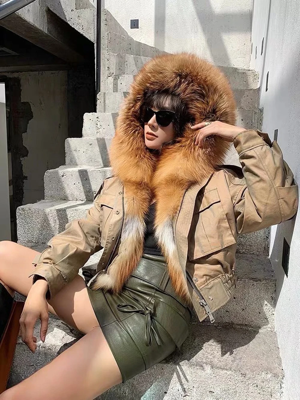 Женская короткая куртка-бомбер со съемной подкладкой из натурального меха овечьей шерсти, короткая куртка с серебристой и красной лисой на воротнике, S7652