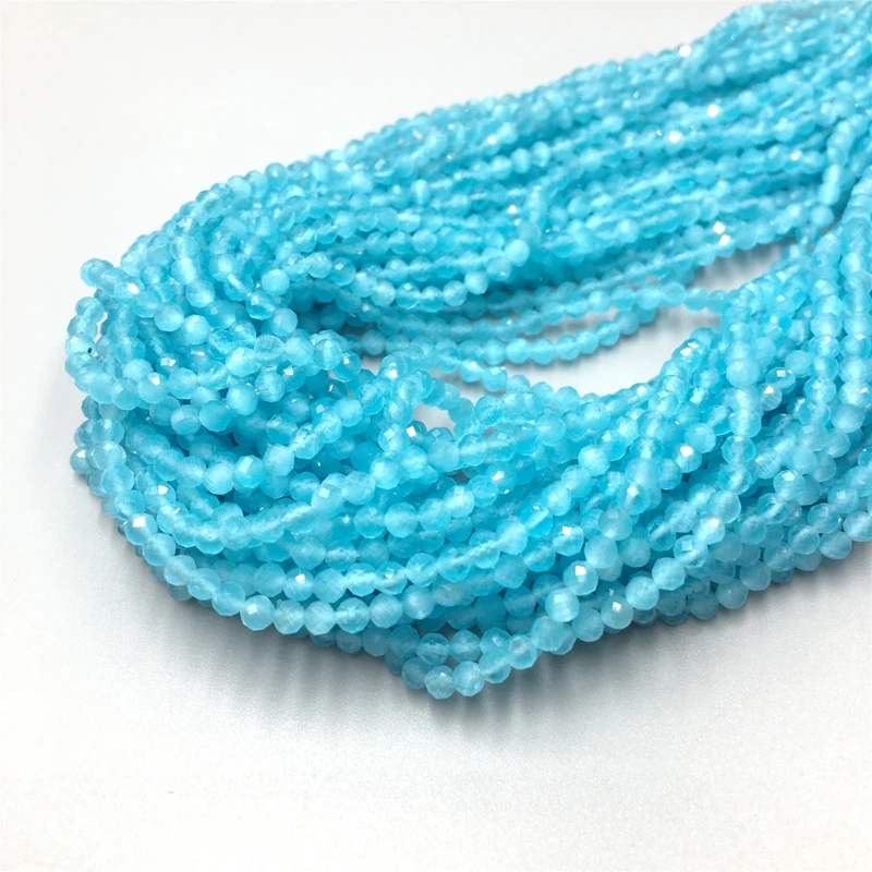 15,5 "синий Кошачий глаз граненые бусины 2 мм 3 мм бусины из натура...
