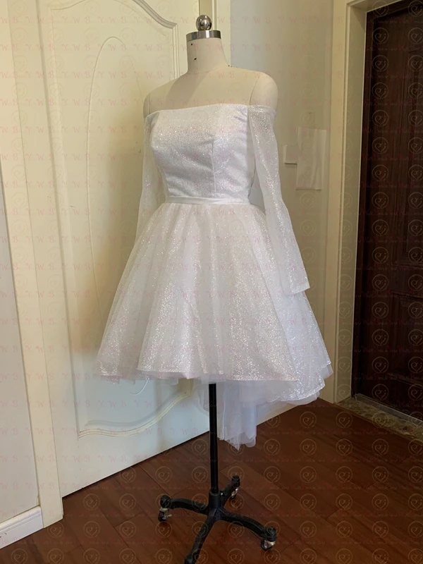 Бальное платье с вырезом лодочкой, открытыми плечами, платья для выпускного вечера, блестящие коктейльные платья до колен с длинным рукавом, 2021