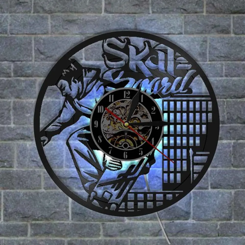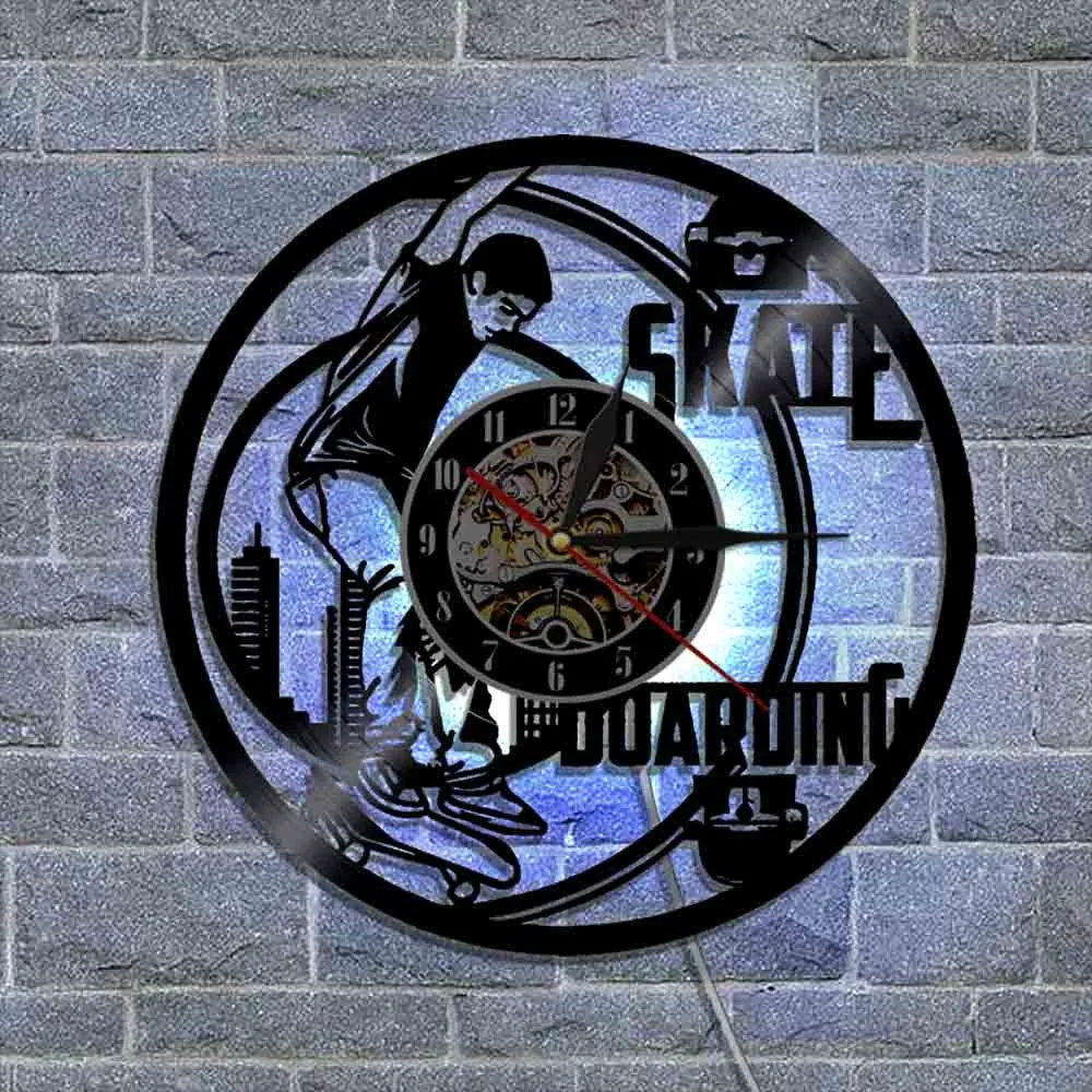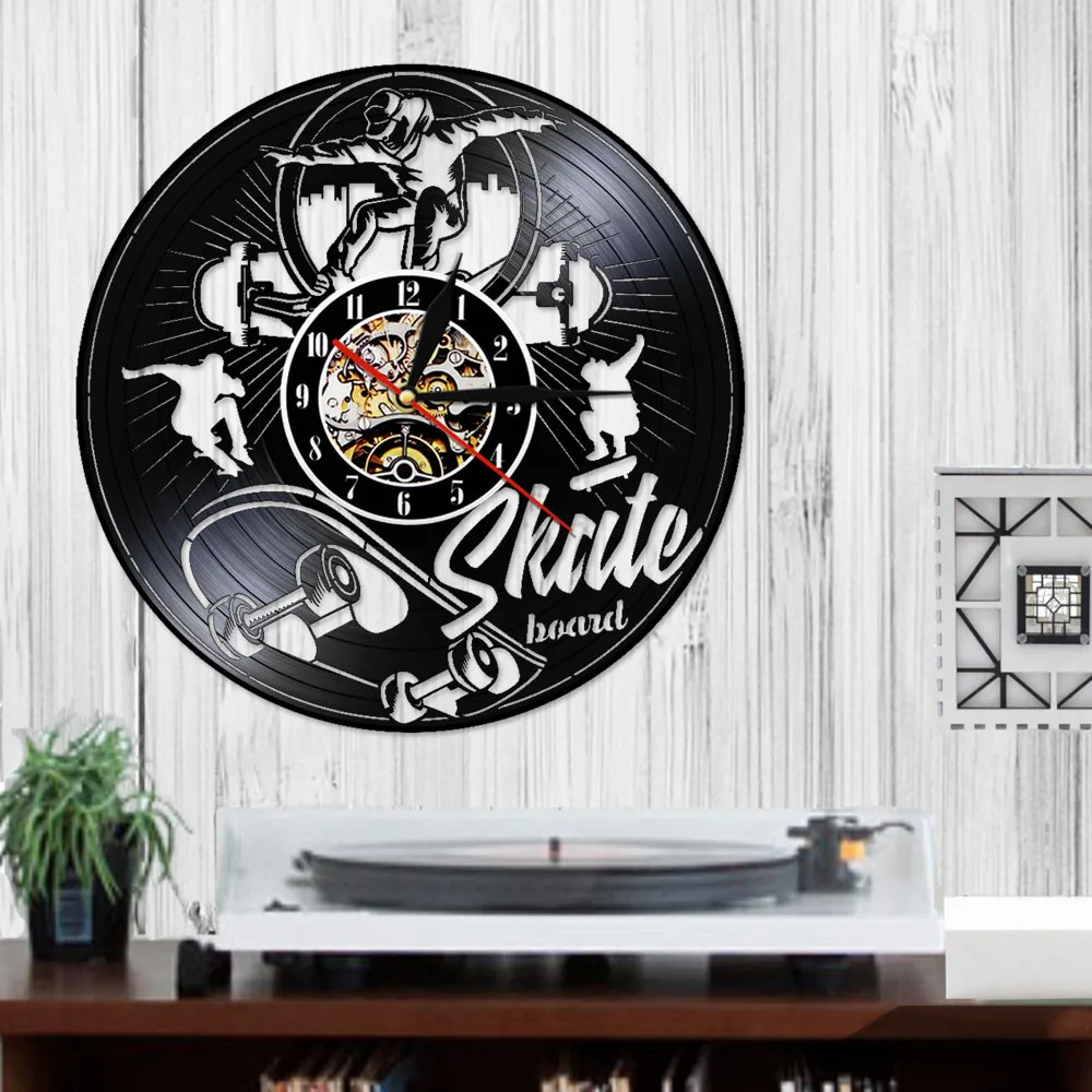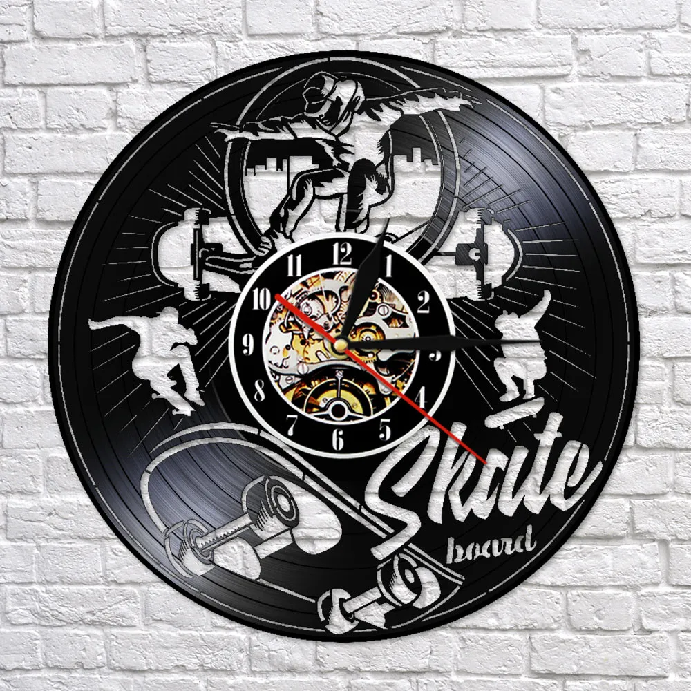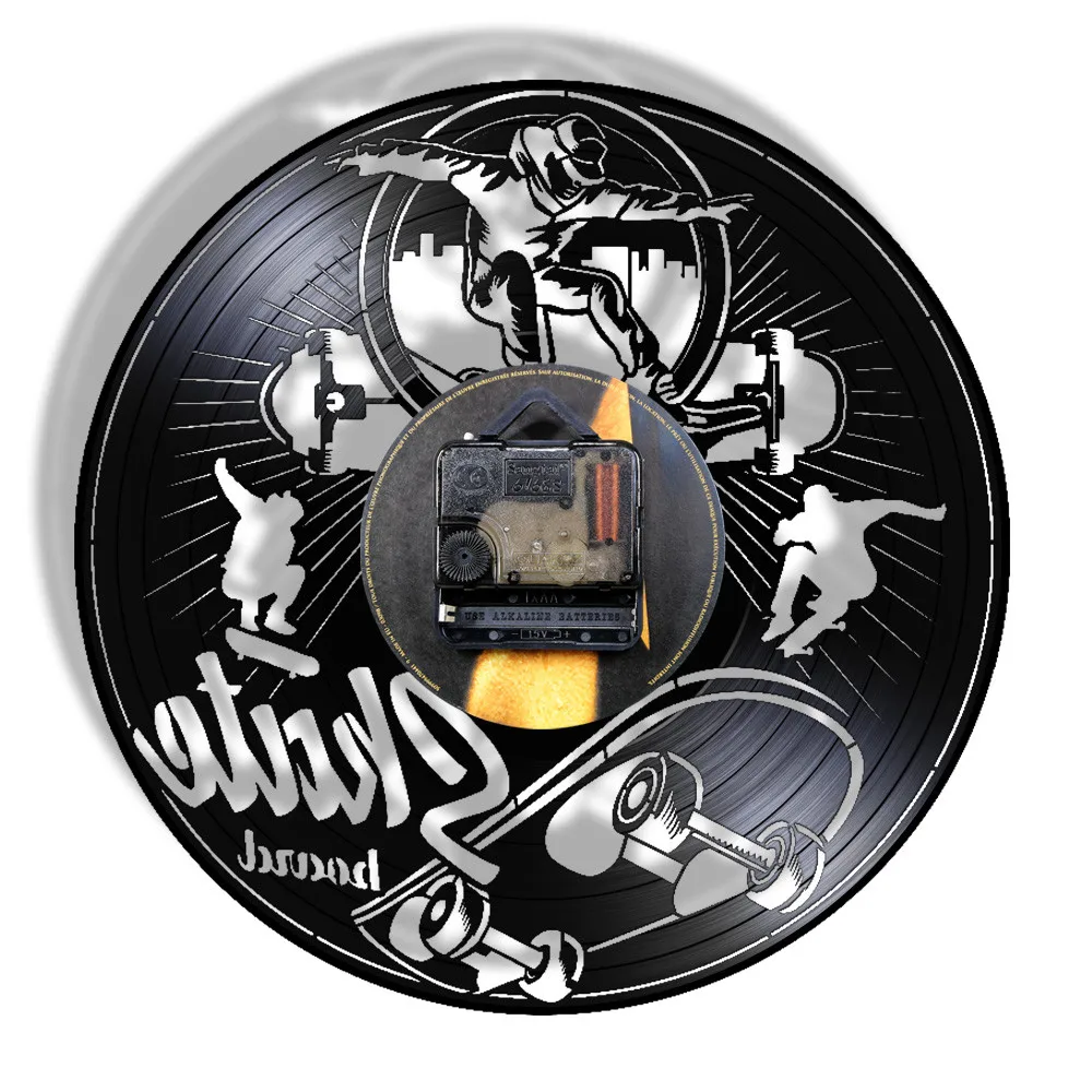 Скейтборд, роликовые скейтеры, настенные часы, скейтборд, экстремальные приключения, спорт, скейтбордист, украшение ручной работы, бесшумные кварцевые часы