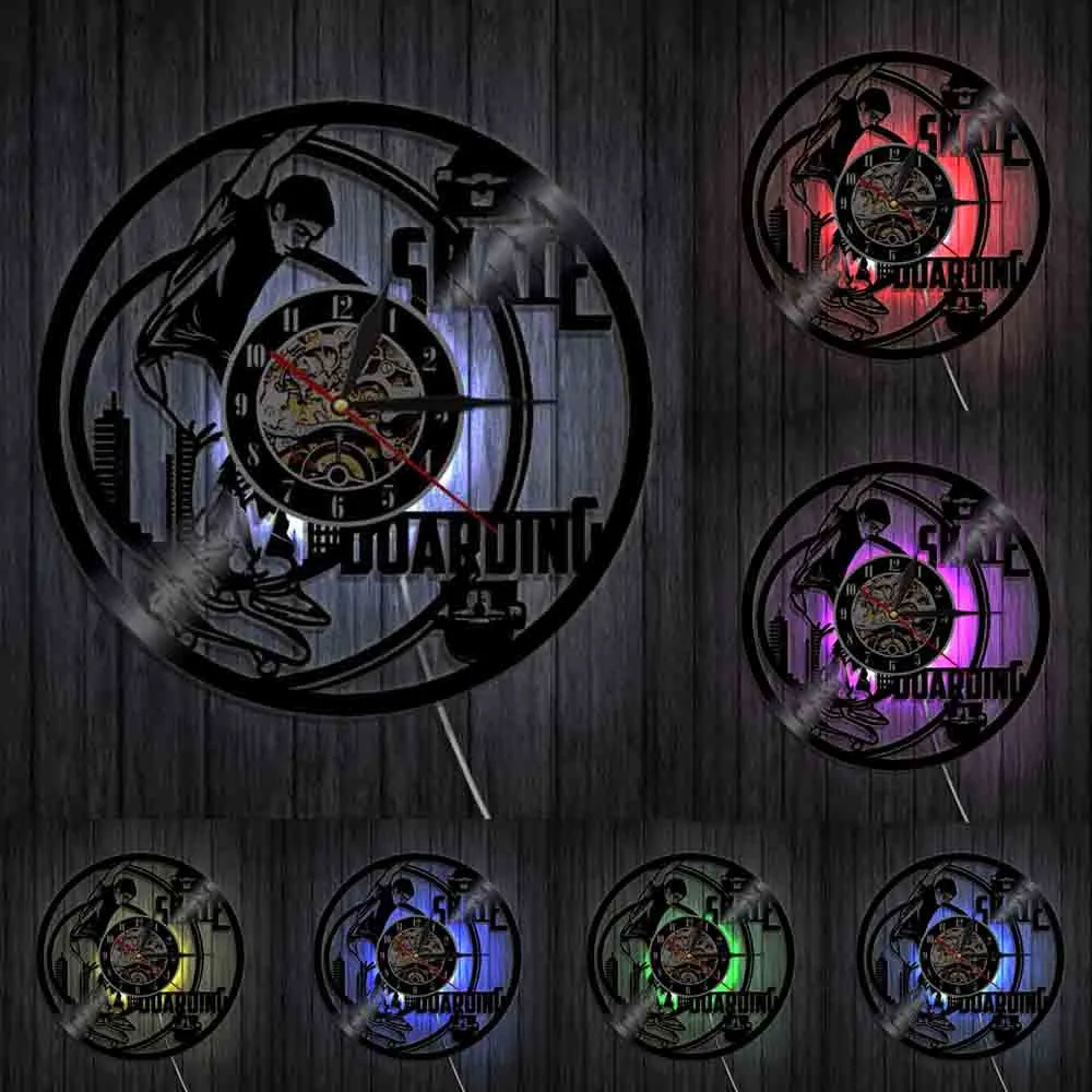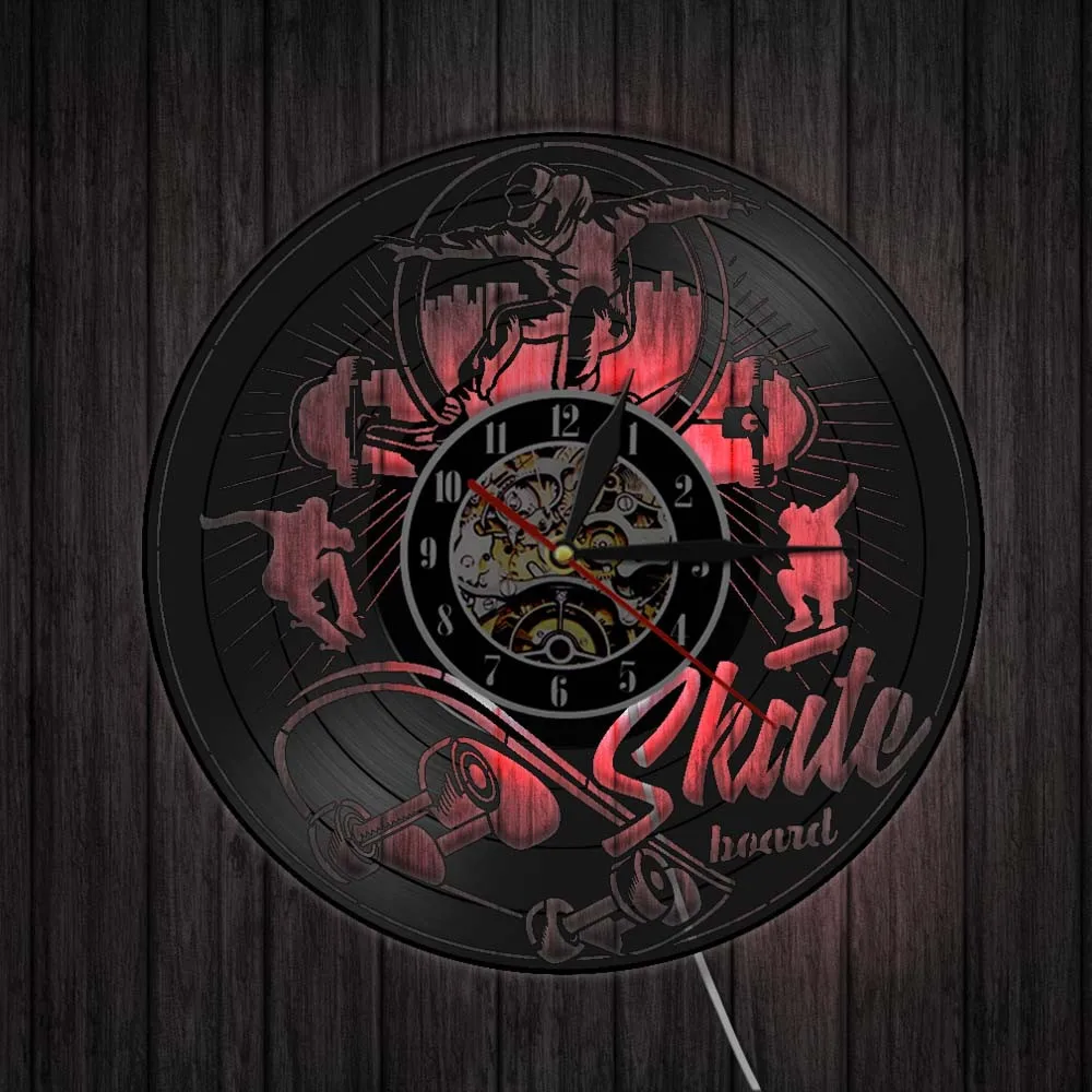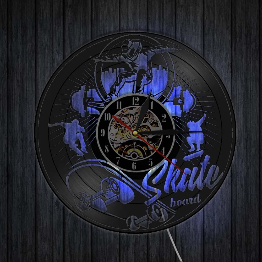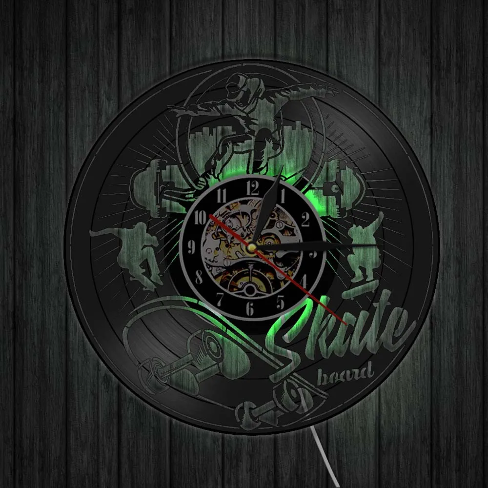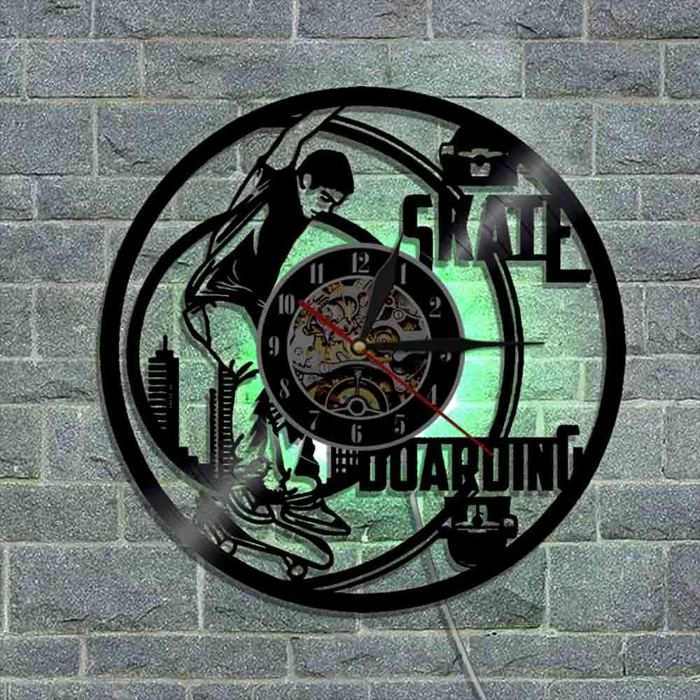 Скейтборд, роликовые скейтеры, настенные часы, скейтборд, экстремальные приключения, спорт, скейтбордист, украшение ручной работы, бесшумные кварцевые часы