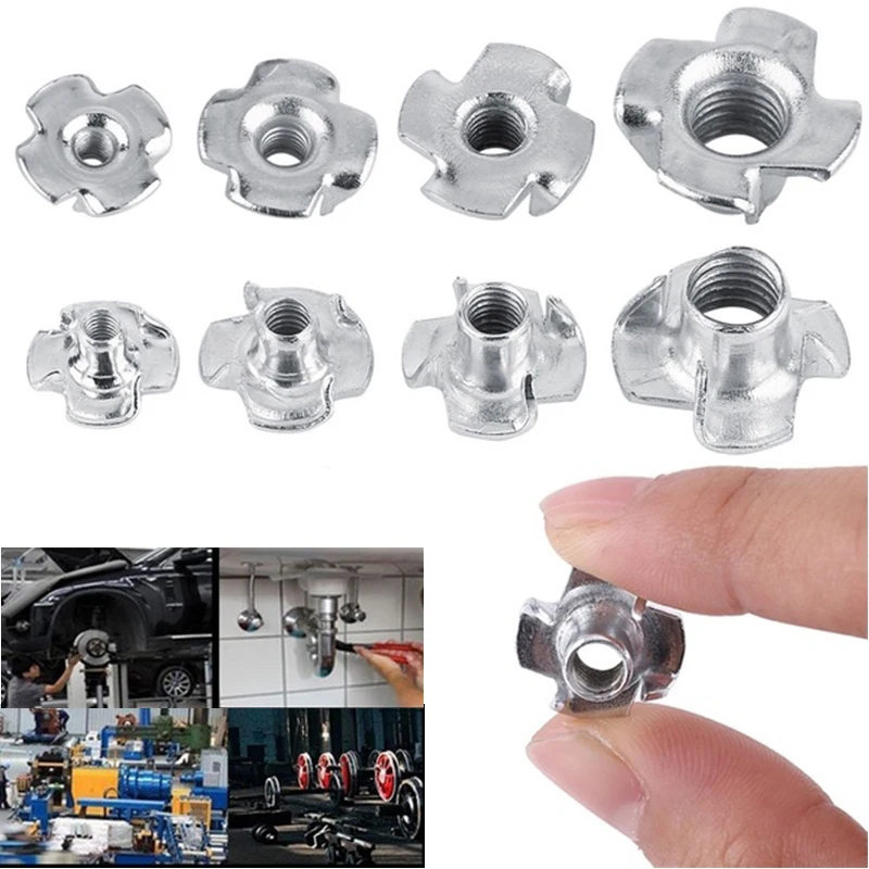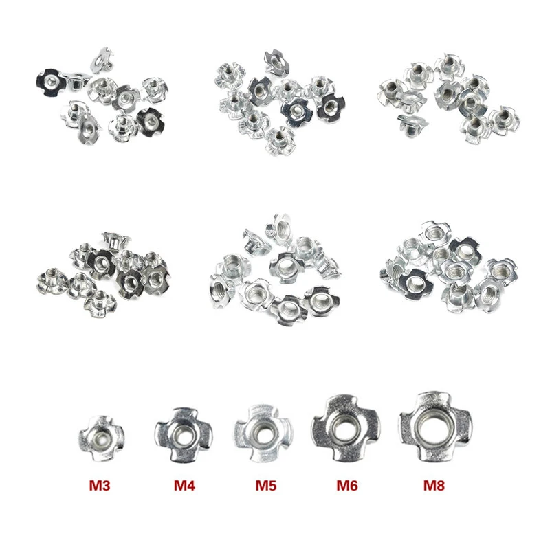 10 шт., оцинкованная гайка M3 M4 M5 M6 M8 с четырьмя зажимами, Т-образная заглушенная гайка, тройник, мебельная фурнитура, детали