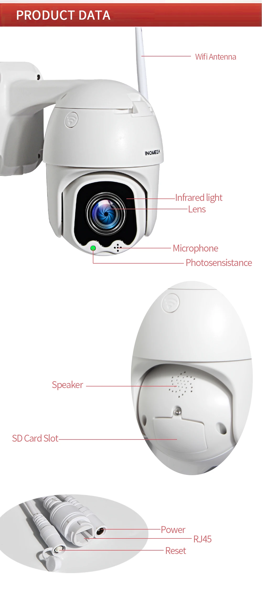 Камера видеонаблюдения INQMEGA, Беспроводная купольная камера безопасности, 5 МП, 4-кратный цифровой зум, поддержка Wi-Fi, PTZ, водонепроницаемый