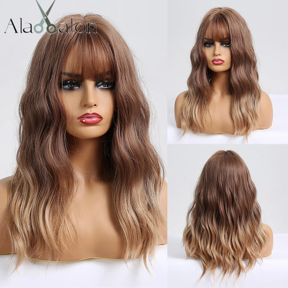 Парики для косплея для чернокожих женщин, коричневые, светлые парики с эффектом деграде ALAN EATON с челкой из высокотемпературного волокна