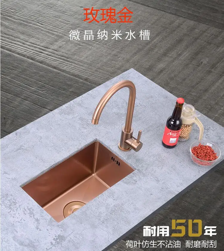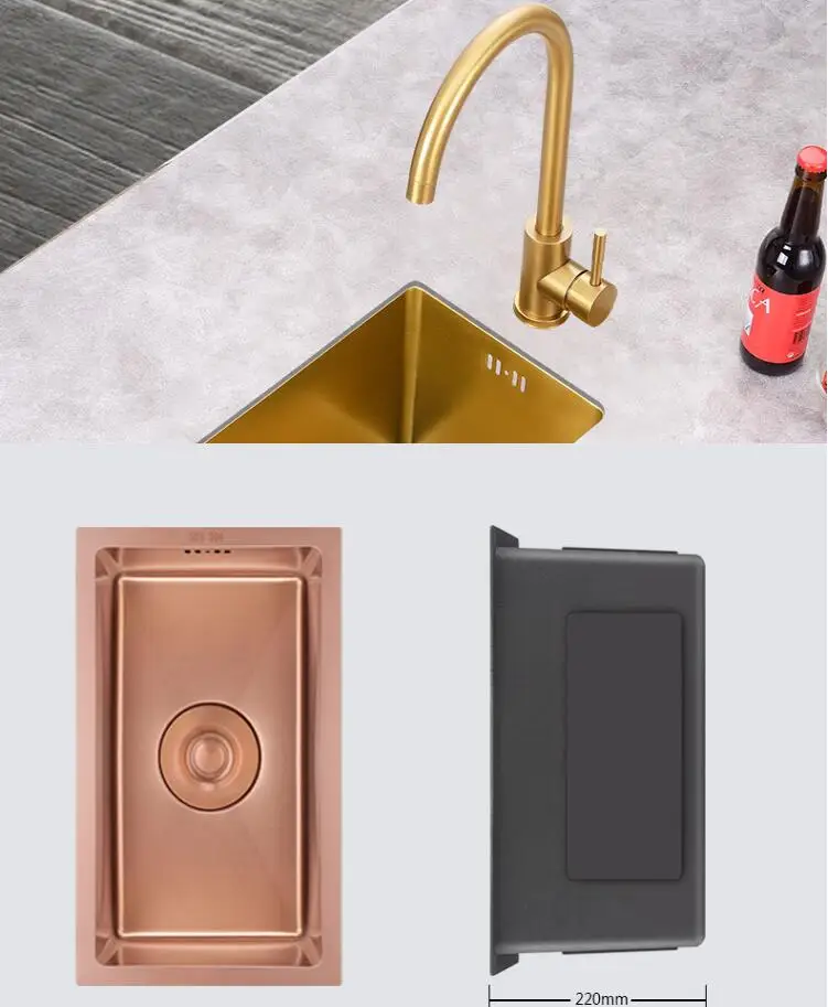 Мини-кухонная раковина, розовое золото, низкий балкон, маленькая одноместная раковина, мини-кухонная раковина, корзина для слива