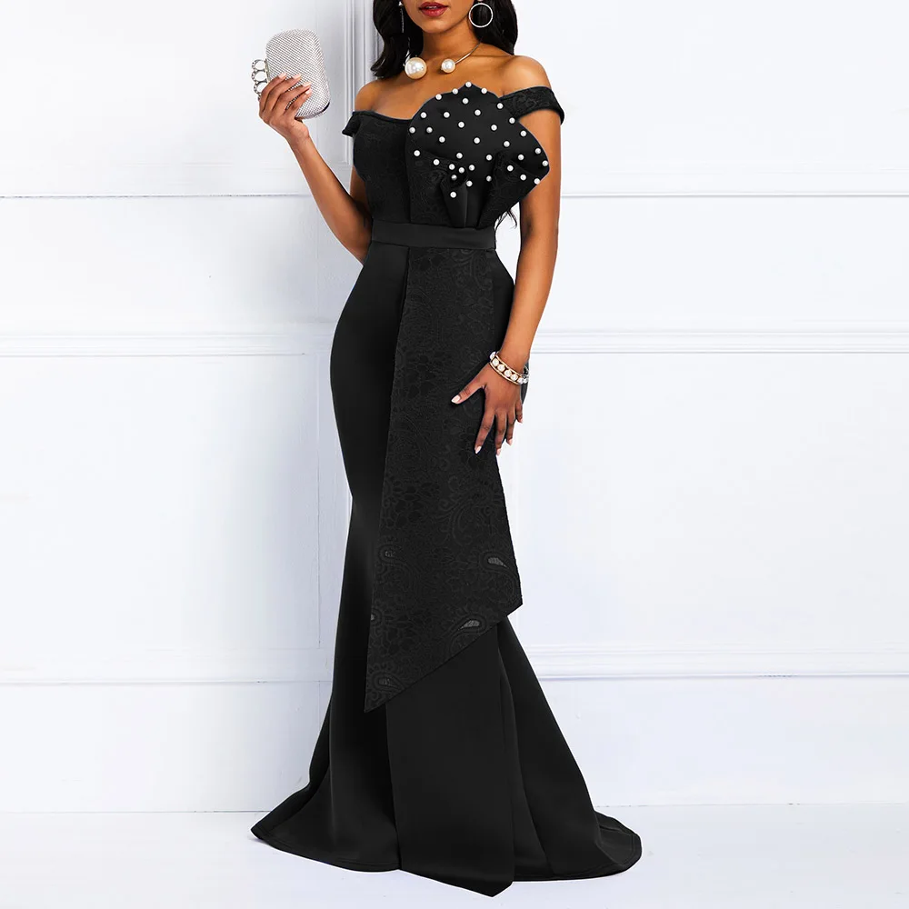 Женское длинное платье-русалка, элегантное вечернее платье с открытыми плечами и бусинами, в африканском стиле, 2021