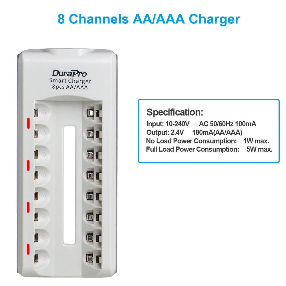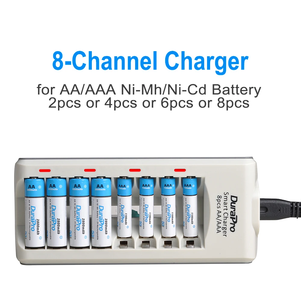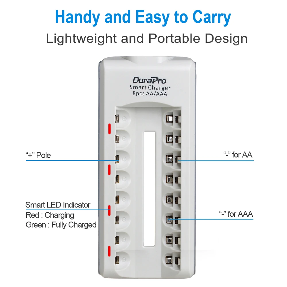 Интеллектуальное зарядное устройство DuraPro с 8 слотами AA AAA, светодиодный дисплей для никель-металлогидридных аккумуляторов AA aaa Ni-Cd
