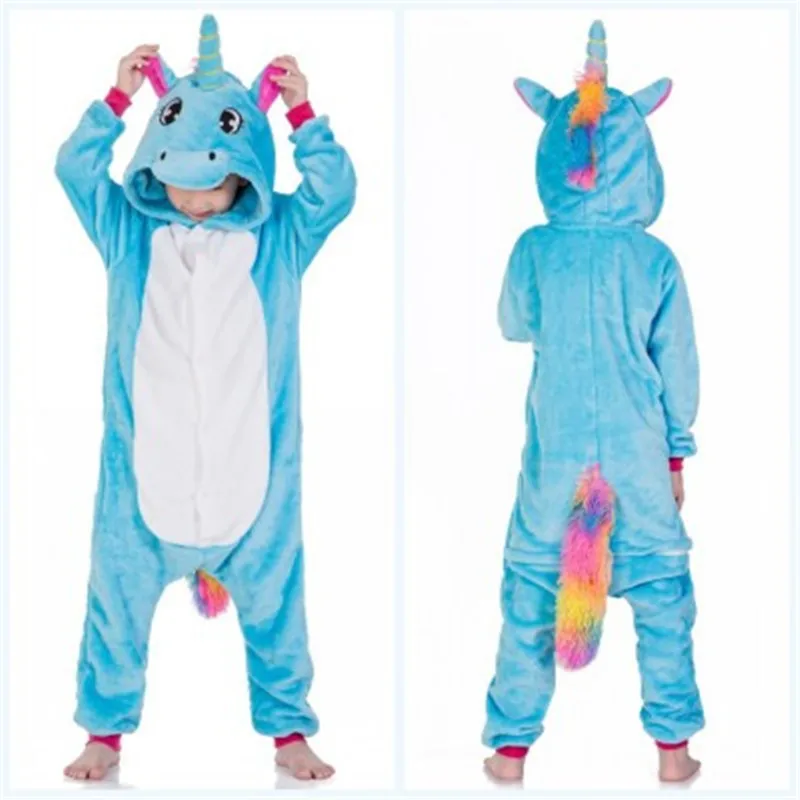 Детские зимние сиамские пижамы, пижамы с капюшоном и мультяшным животным, фланелевый теплый комбинезон, пижамы для мальчиков и девочек, комбинезон